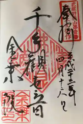 奥多摩霊場の八十八御朱印は無いので、金乗院、千手観音さまの御朱印。