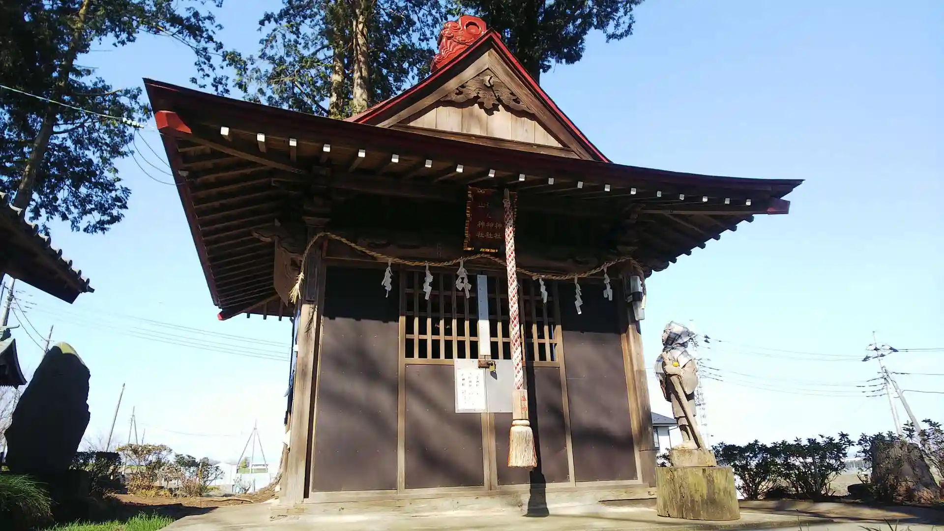創建年代等は不詳ですが、江戸時代初期の創建とも云われています。御祭神は誉田別尊(ほむたわけのみこと)です。新築の様な綺麗な拝殿や、豪快な木彫りの龍が印象的でした。広い駐車場があり、そこではトトロならぬトコロなるオブジェが出迎えてくれます。