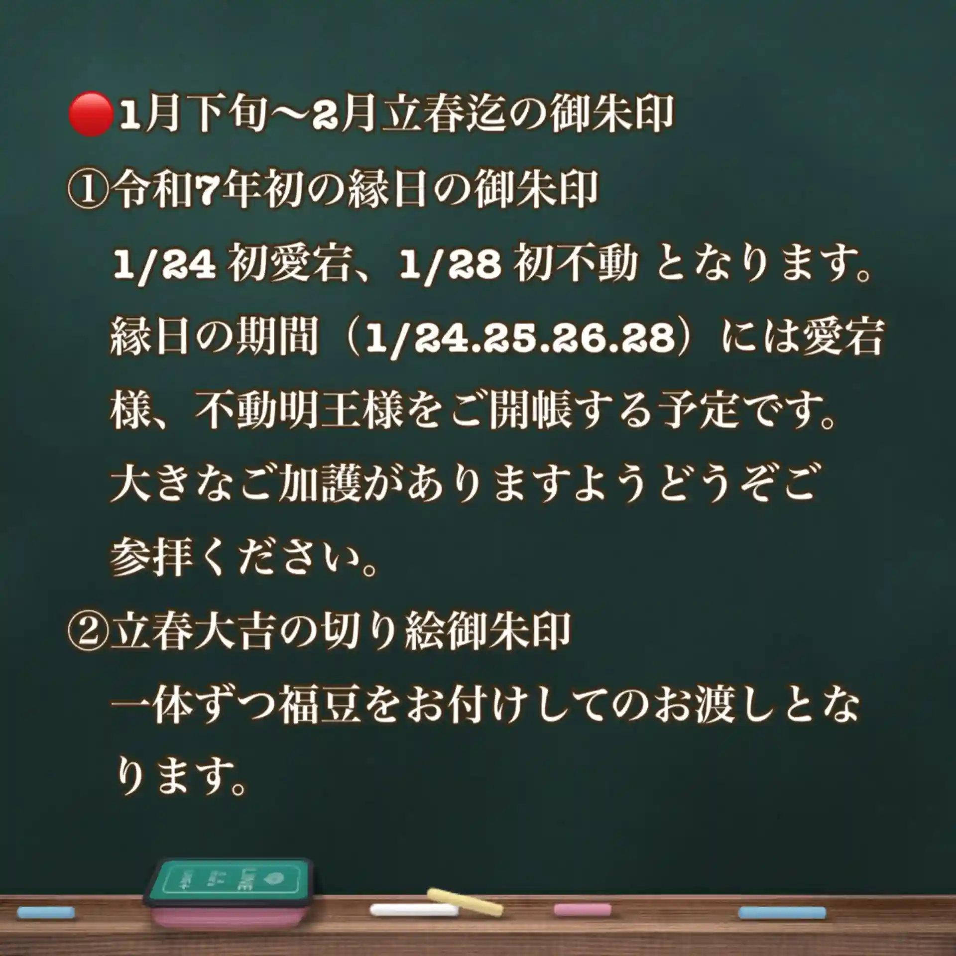 初愛宕と初不動の特別御朱印です。24日初愛宕、28日初不動となります。ご利益のある一月中にお受けください。