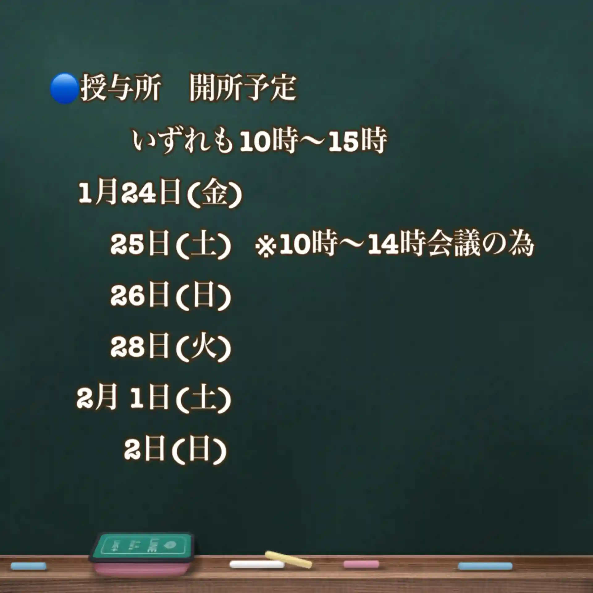 授与所の開所日時です。
