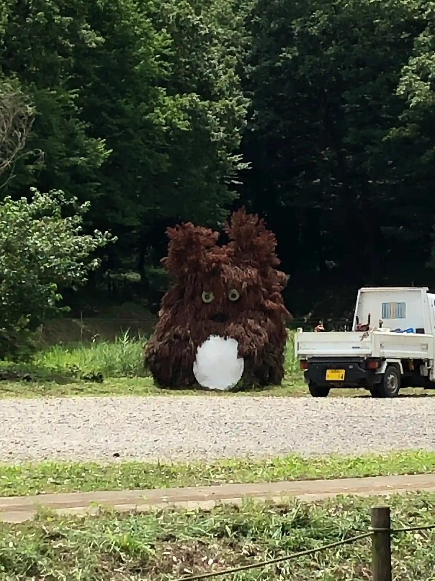 神社の駐車場の前の畠に巨大なトトロらし…