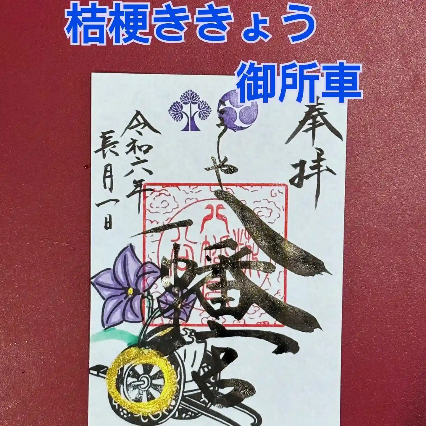 直書き「桔梗と御所車」