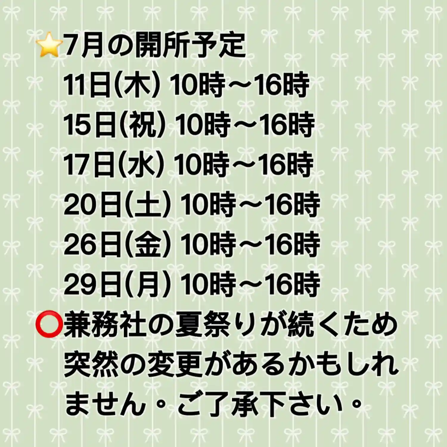 6月後半の授与所の予定