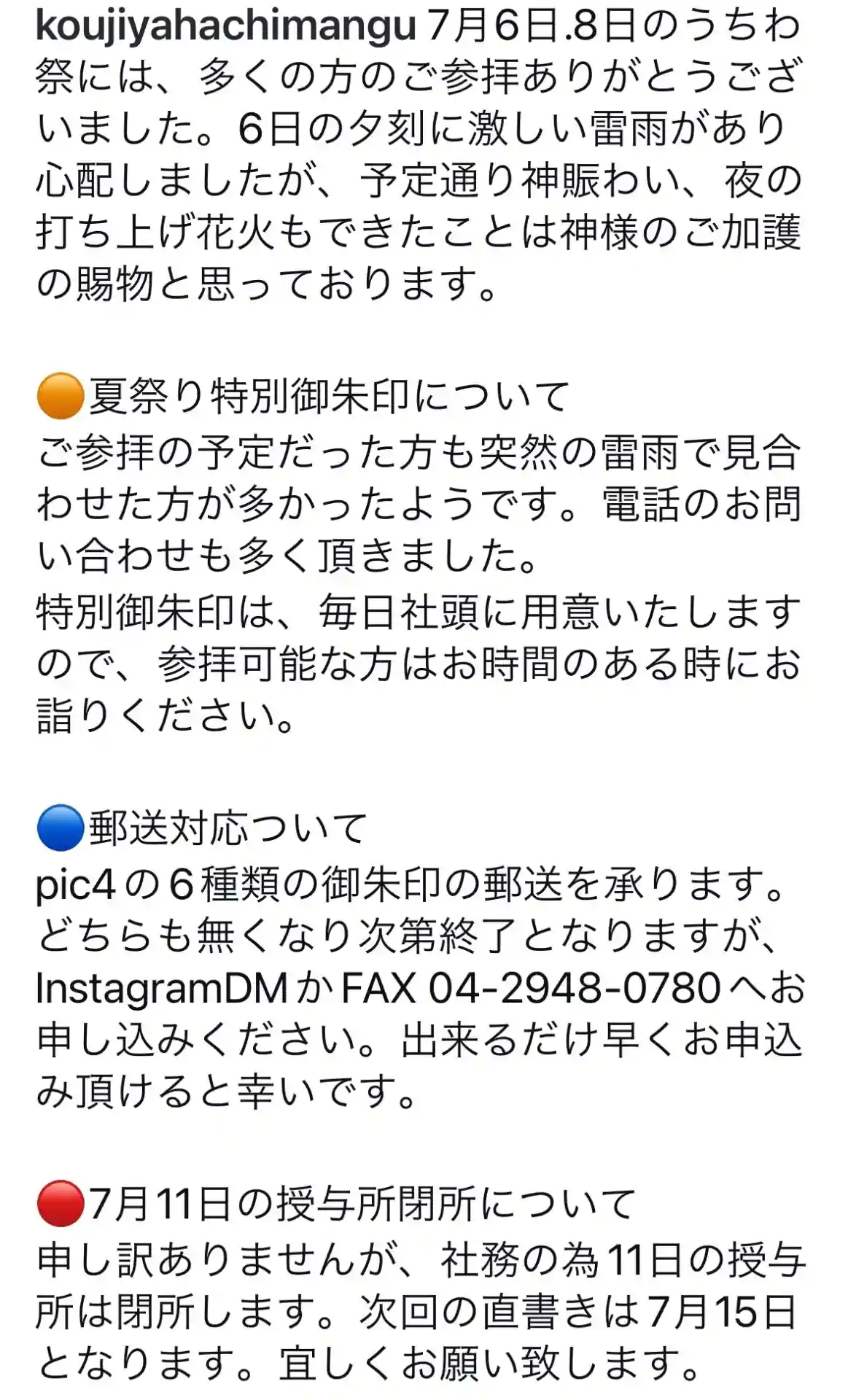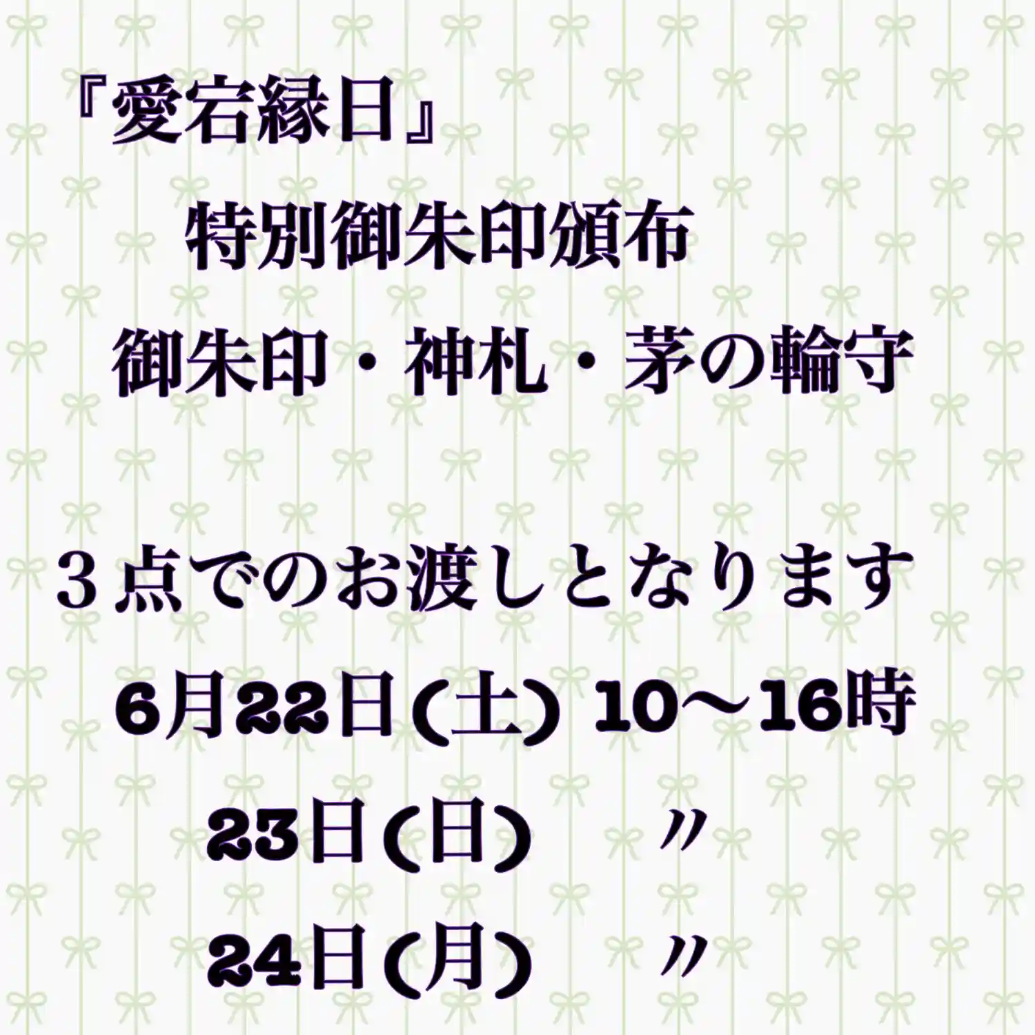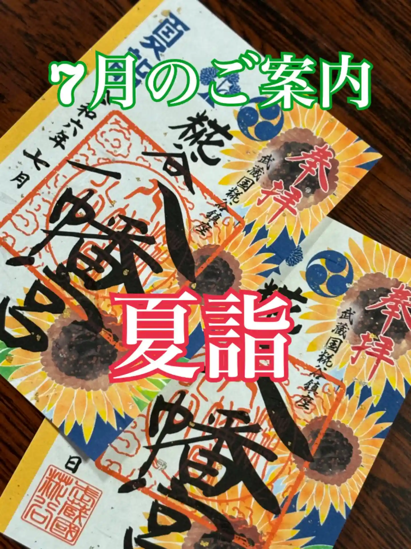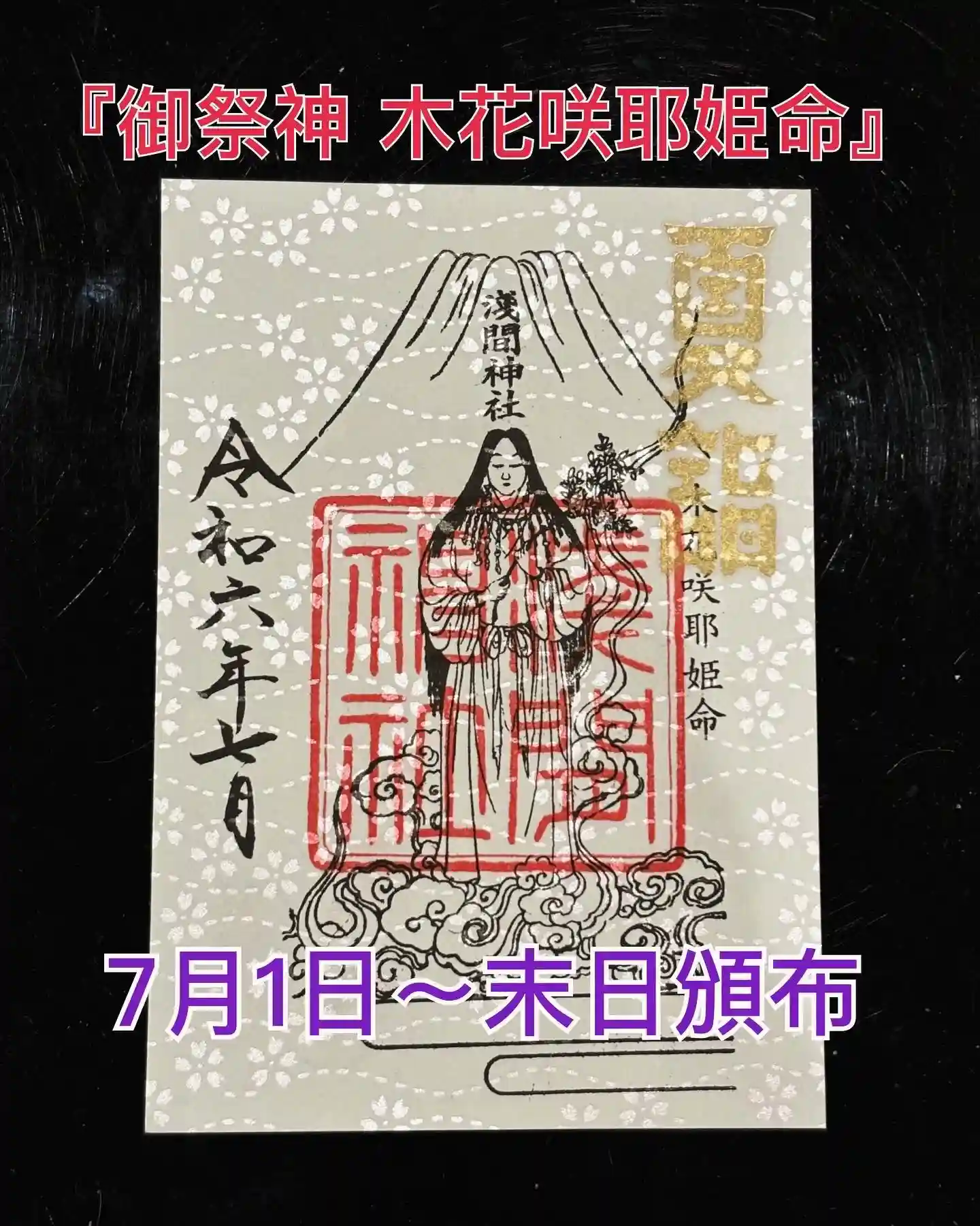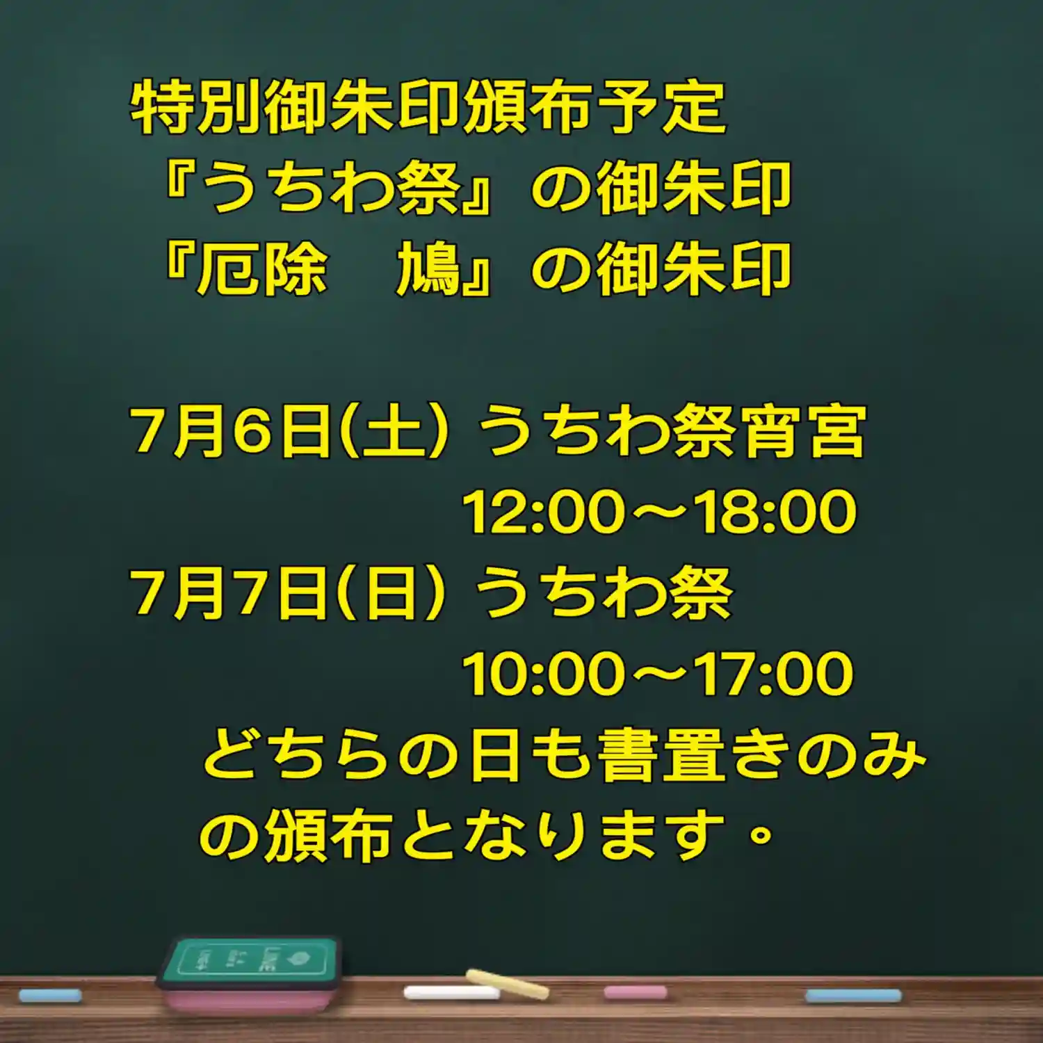 7/1~3日迄、参拝者のみいただける御朱印
