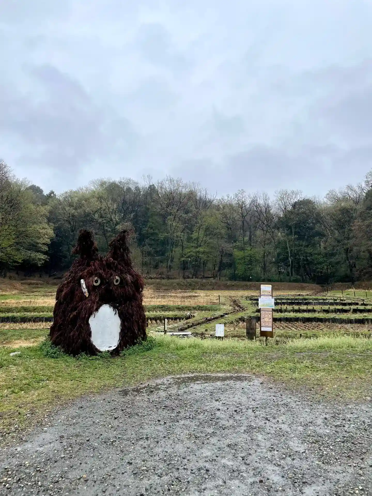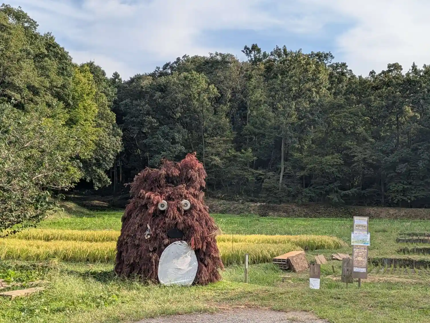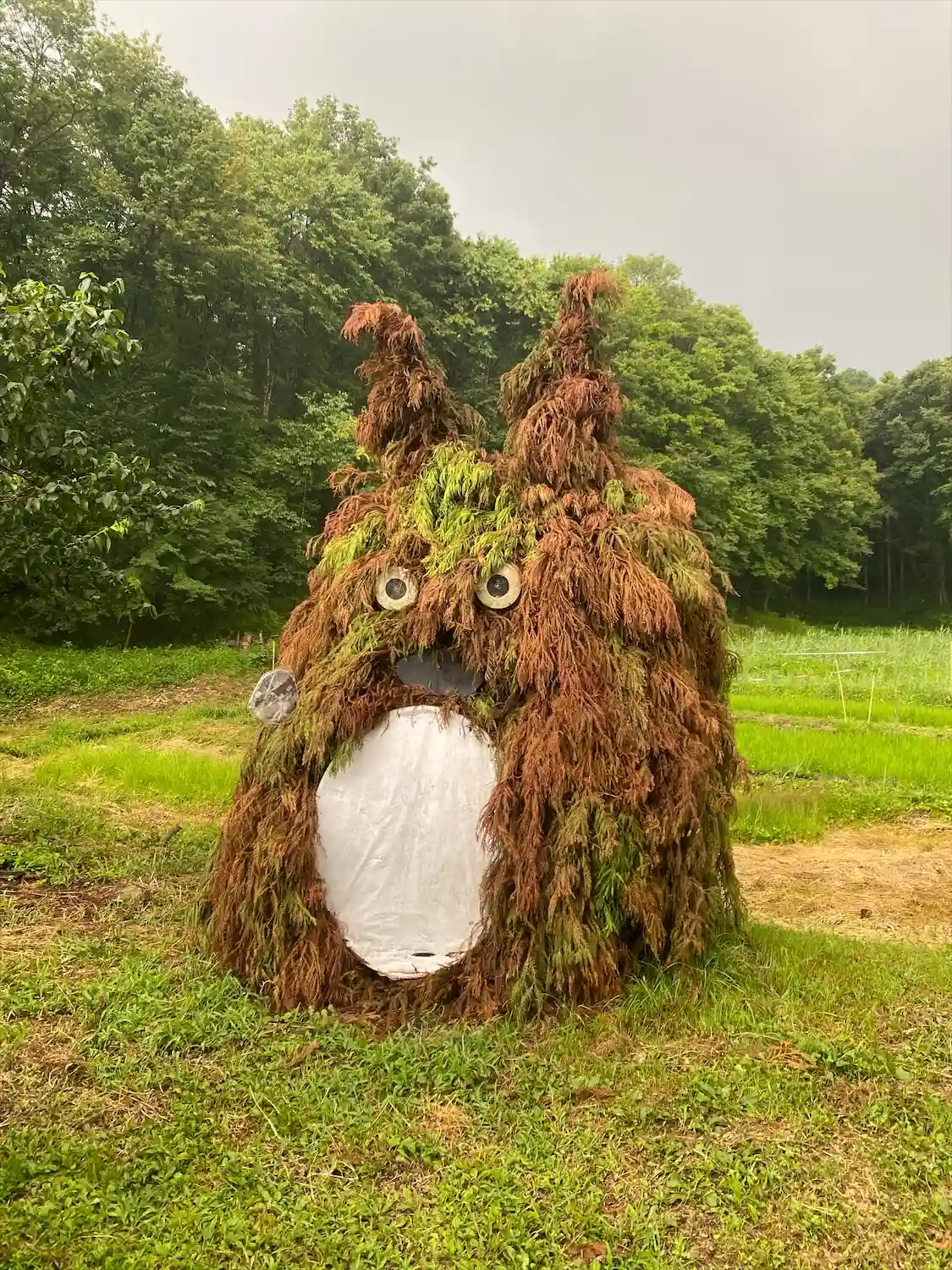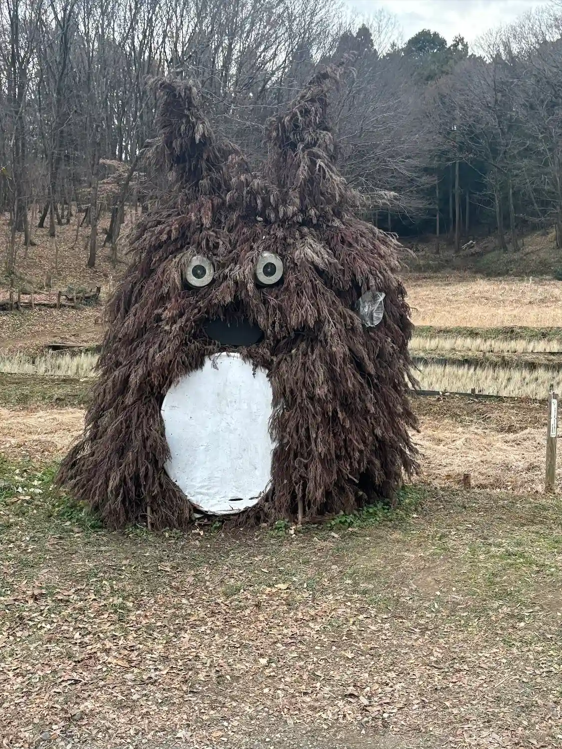 神社の駐車場の前の畠に巨大なトトロらし…