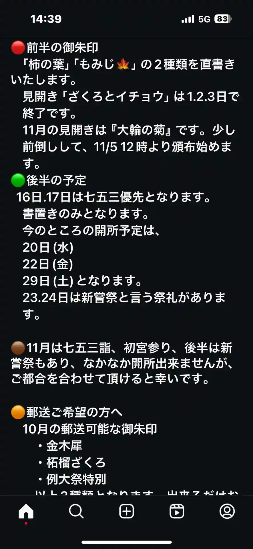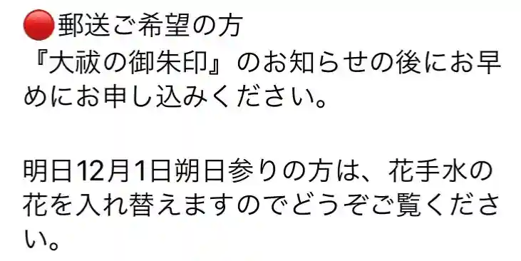 霜月後半の御朱印のご案内です。