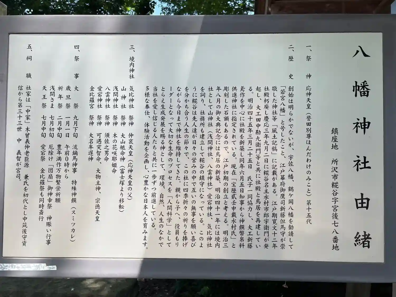 所沢市糀谷にある村社の神社。祭神は誉田別尊。創建年代は不詳。