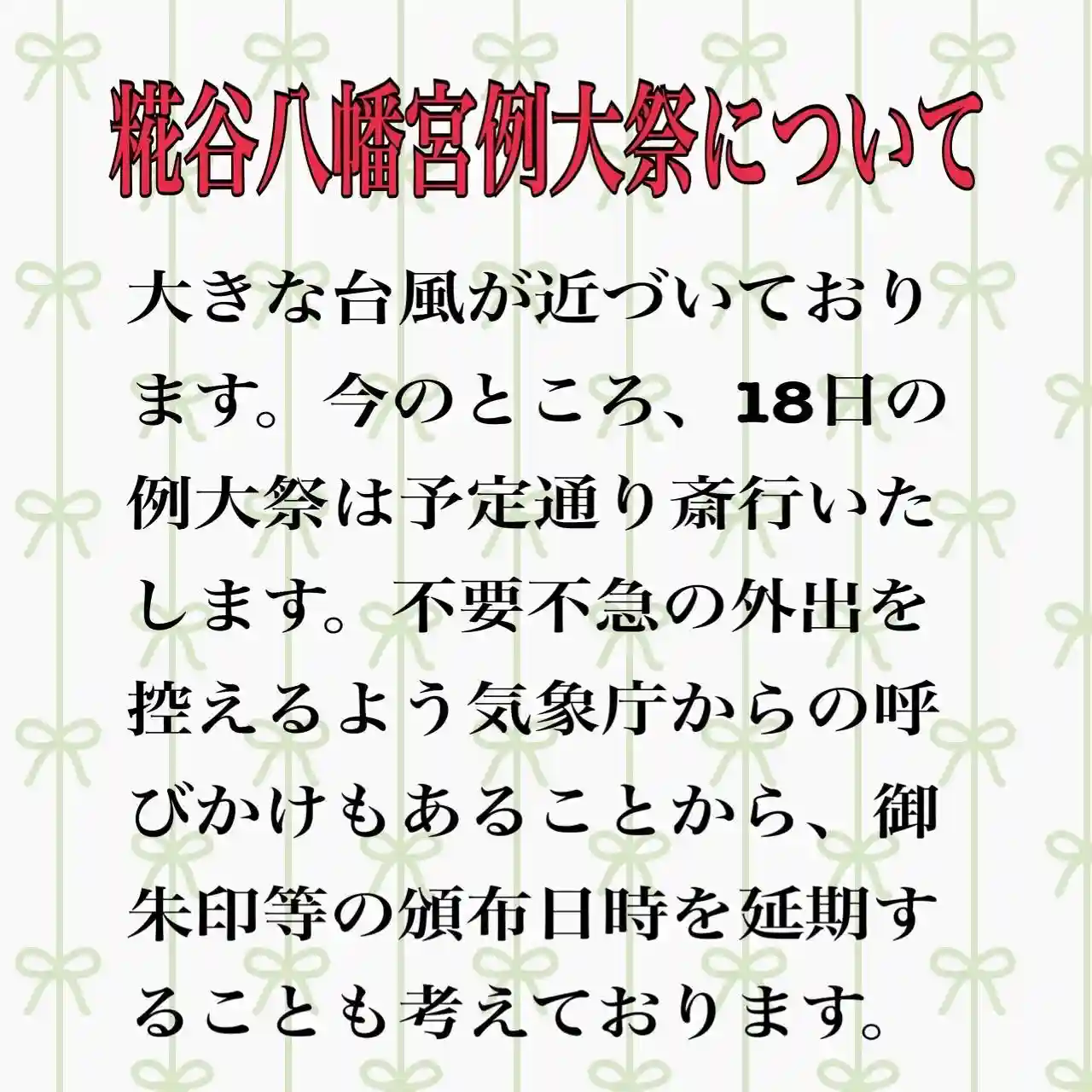 八幡宮からのお知らせをお届けします⛩