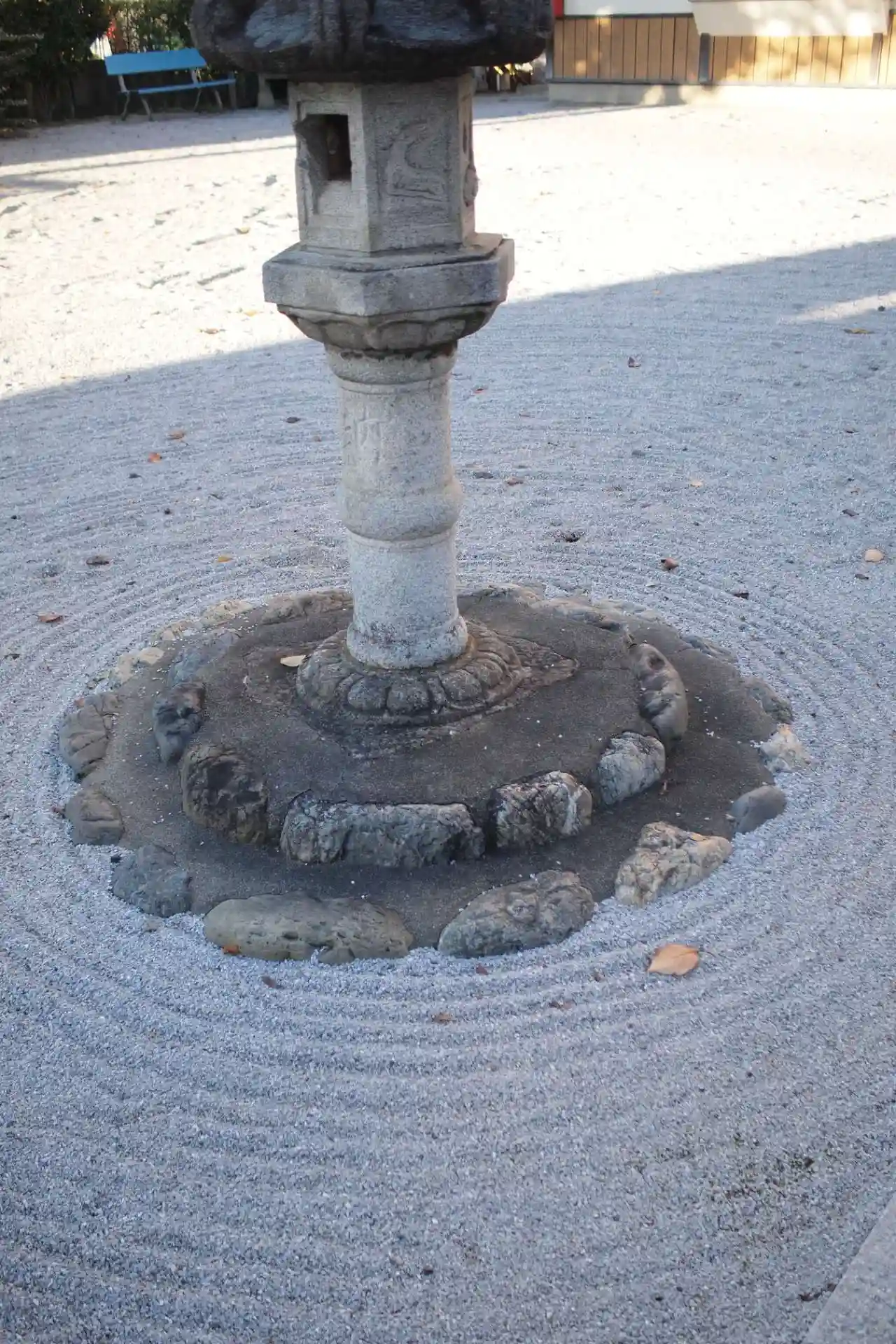 灯篭の周りに日本庭園のように渦が奇麗に描かれています。神職さんは常駐しておられないようですが、通われてまめに手入れされておられるんでしょうね。