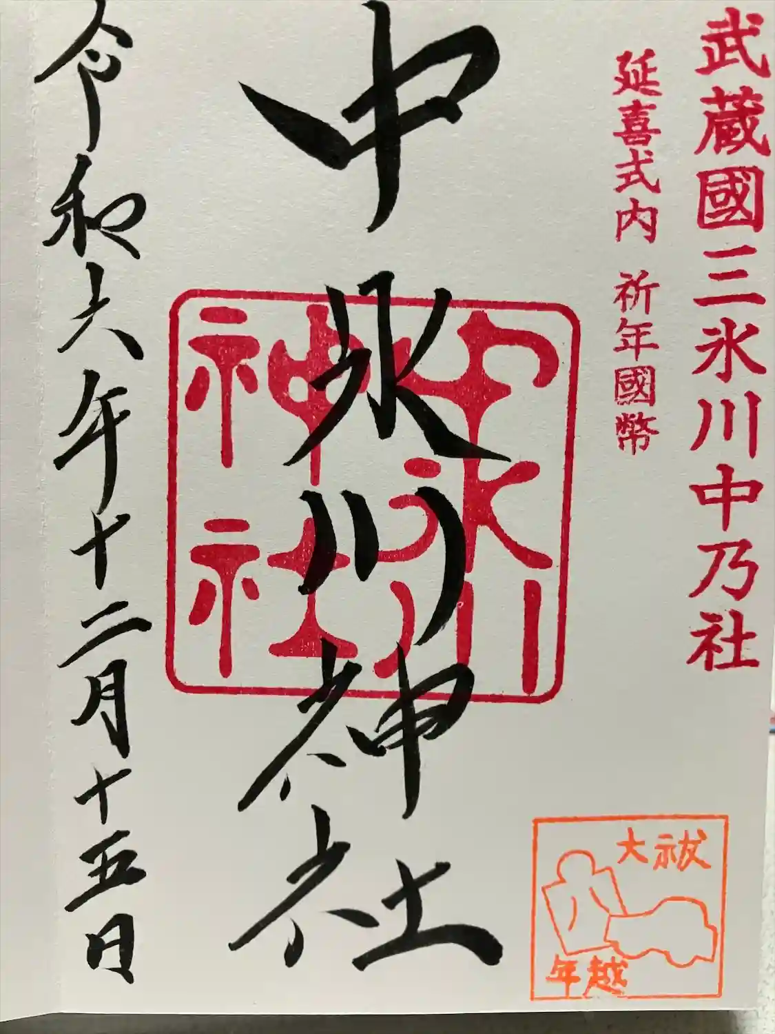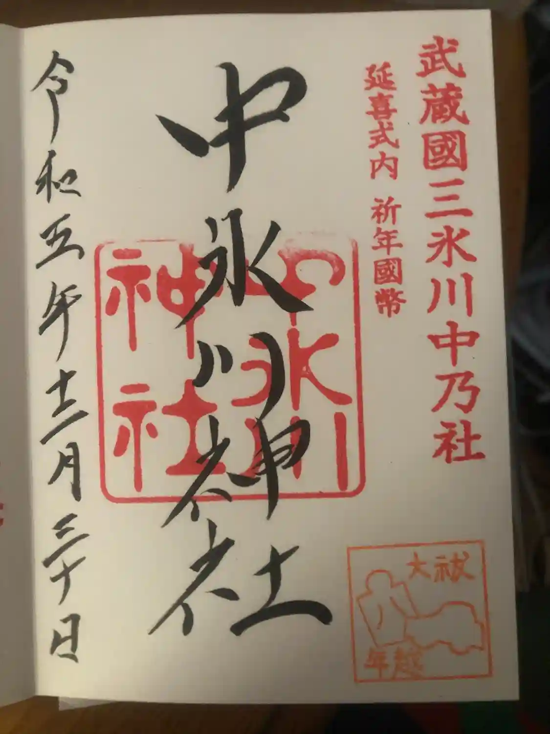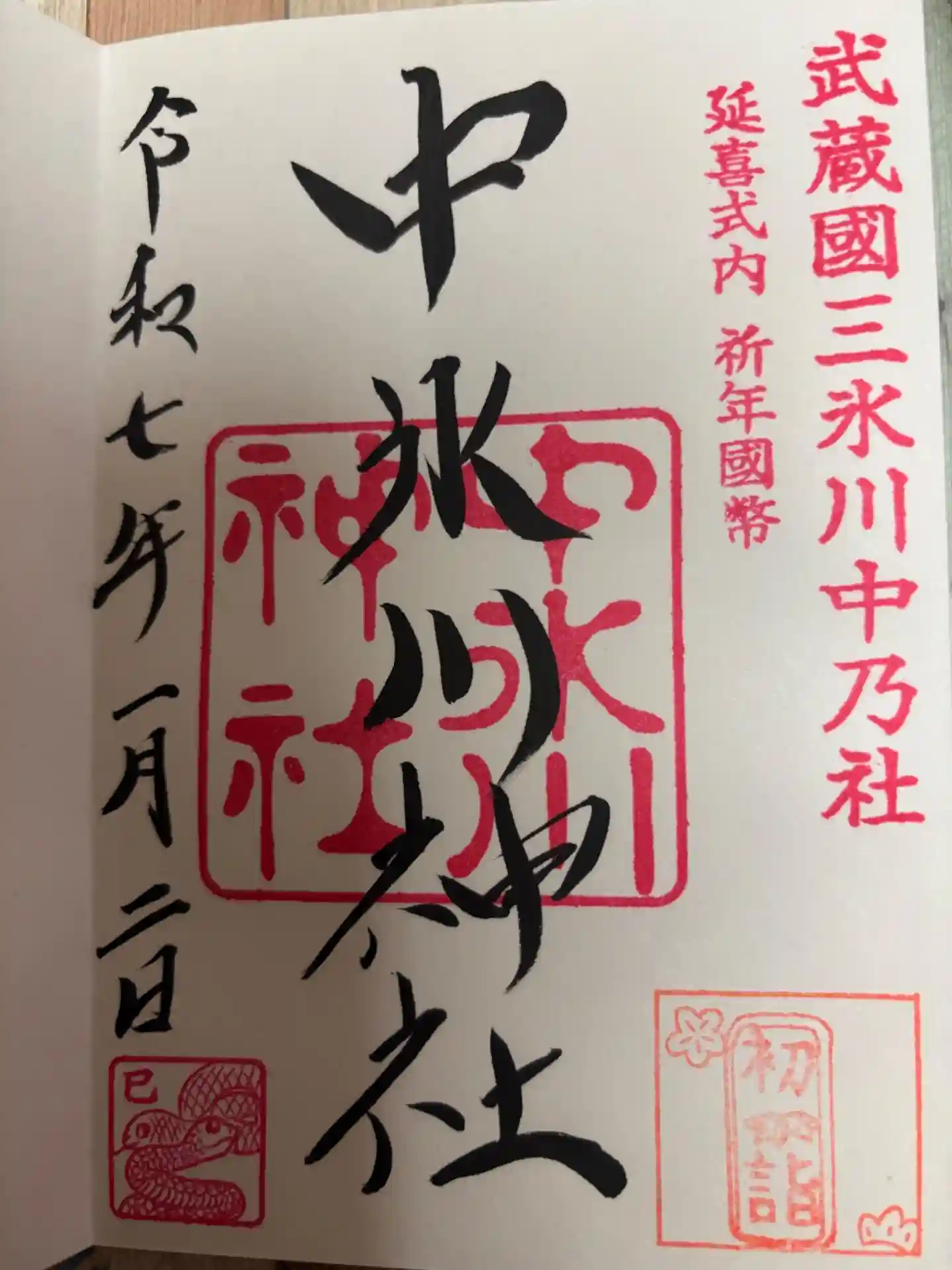 所沢市山口に鎮座する中氷川神社にて御朱印を頂きました。