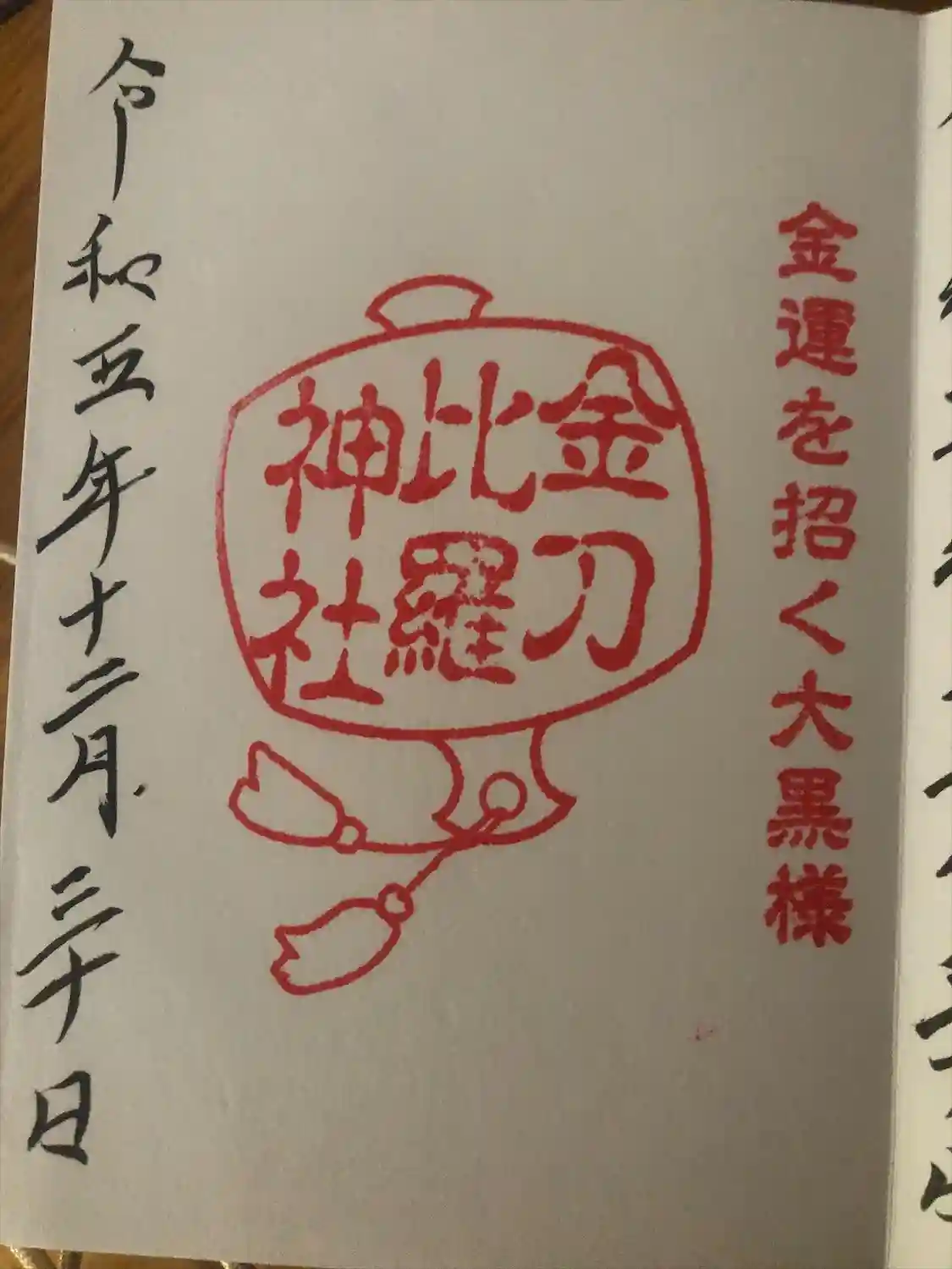 境内社 金刀比羅神社⛩️の御朱印書入れていただきました♪