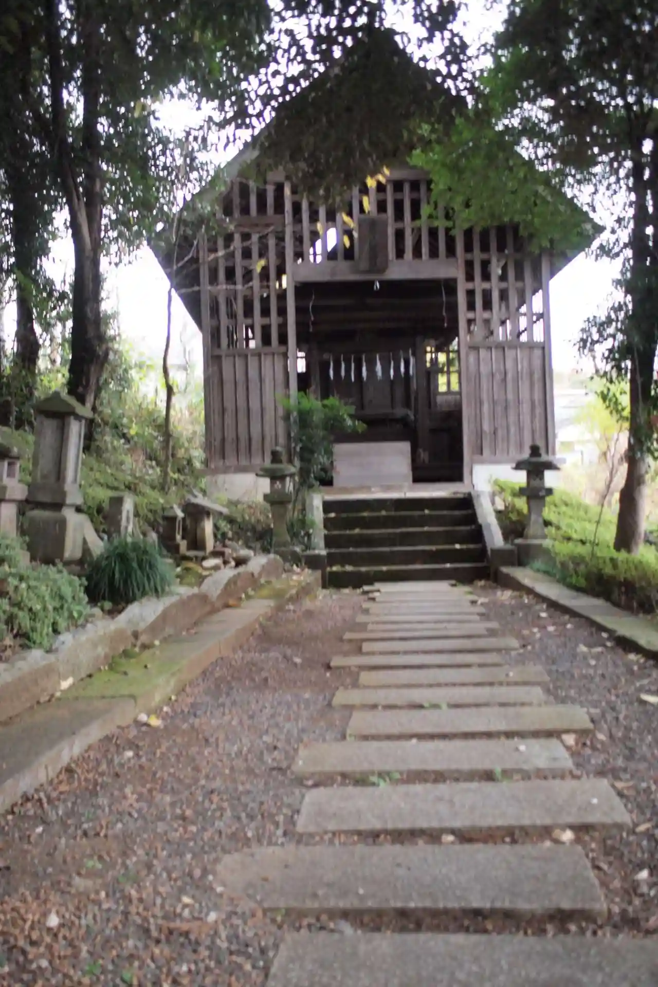 参道の先を望む。階段上がったところに社殿が見える。