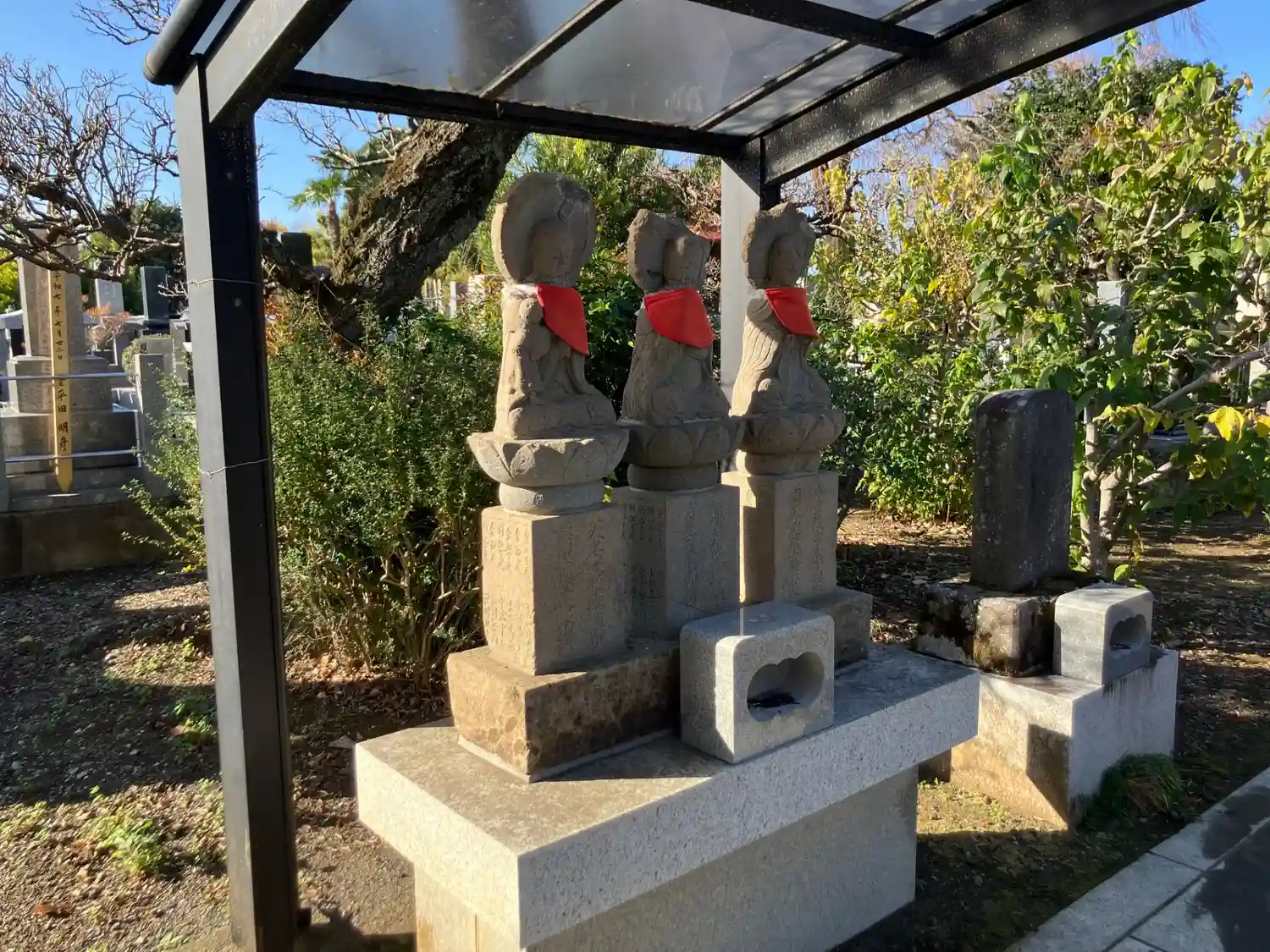 | 武蔵野三十三観音霊場 第12番 | 仏さま:釈迦三尊 御真言: おん あろりきゃ そわか 御詠歌: 北野なる 梅の花咲く 法の里 流れにうたう 紫の雲 |