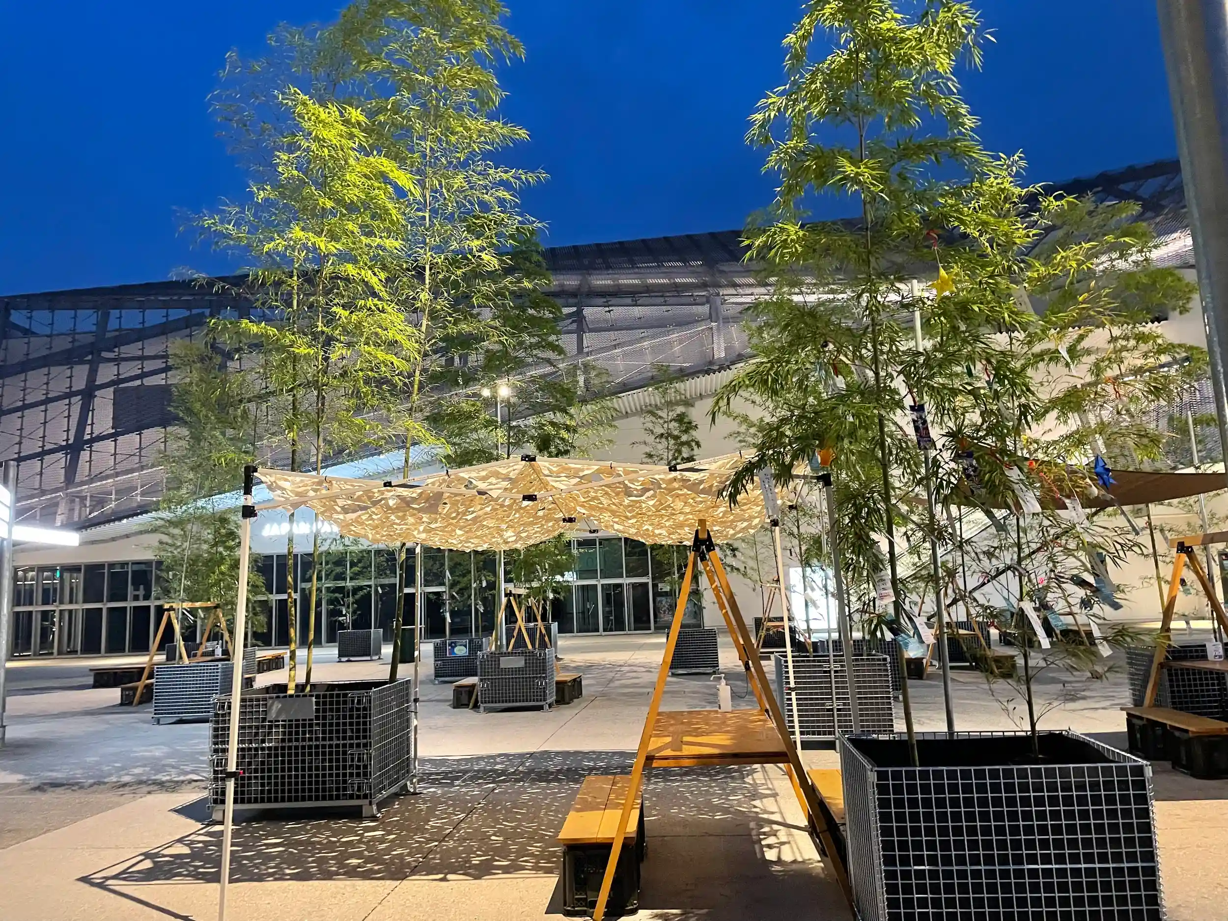 七夕飾りが広場に設置されてました。