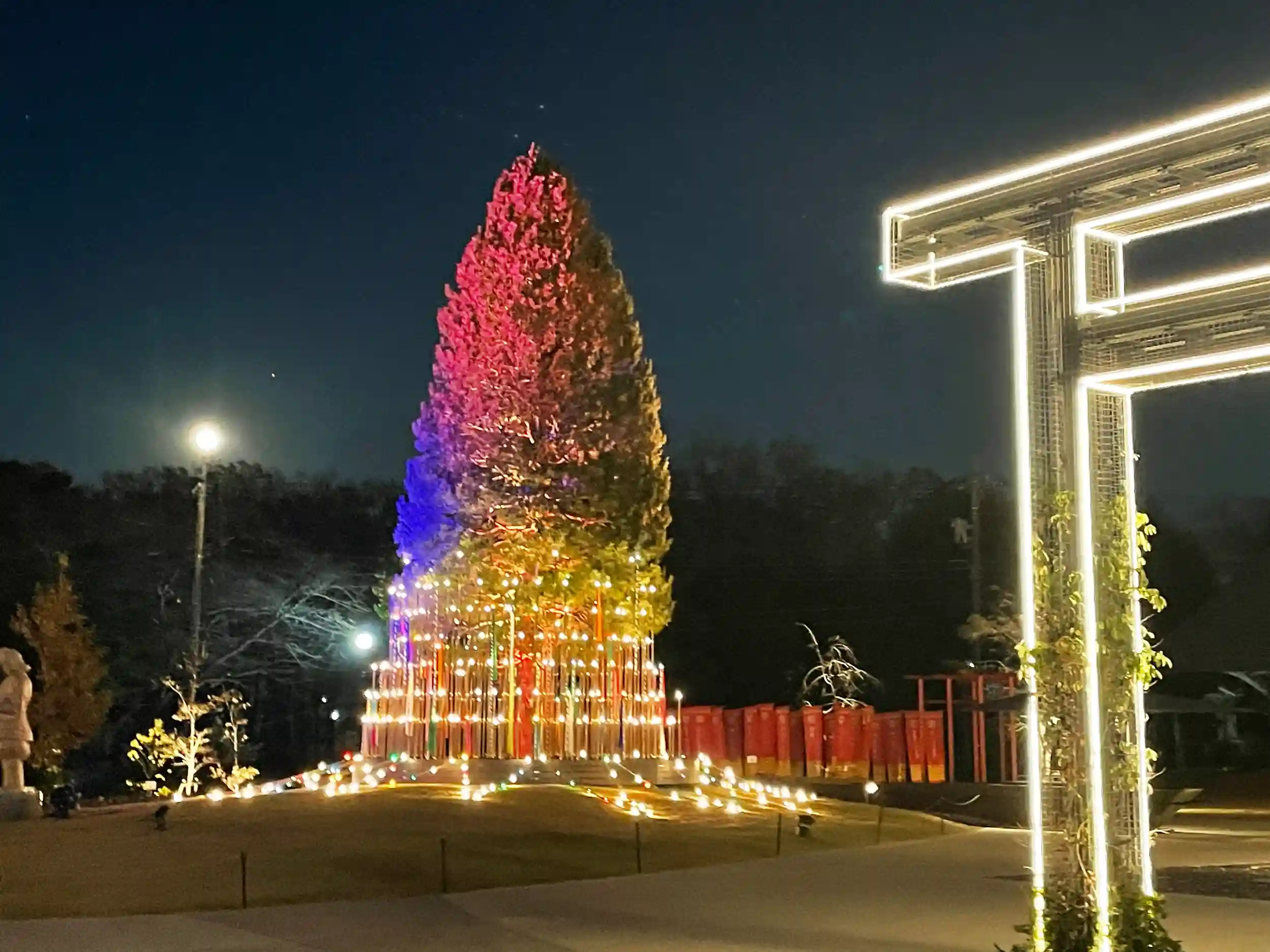 神社のある「ところざわサクラタウン」は、イルミネーションがとても綺麗でした。