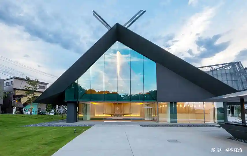 角川ミュージアムのあるところざわサクラタウン内の隈研吾氏がデザインをした武蔵野坐令和神社。2020年に創立したクールジャパンの普及を目的とした近代的な神社でした。