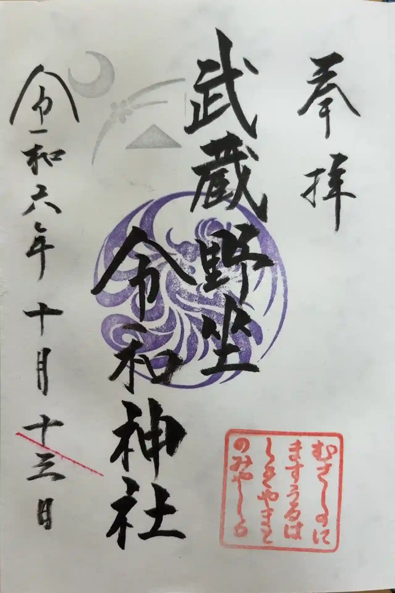武蔵野坐令和神社周辺の御朱印