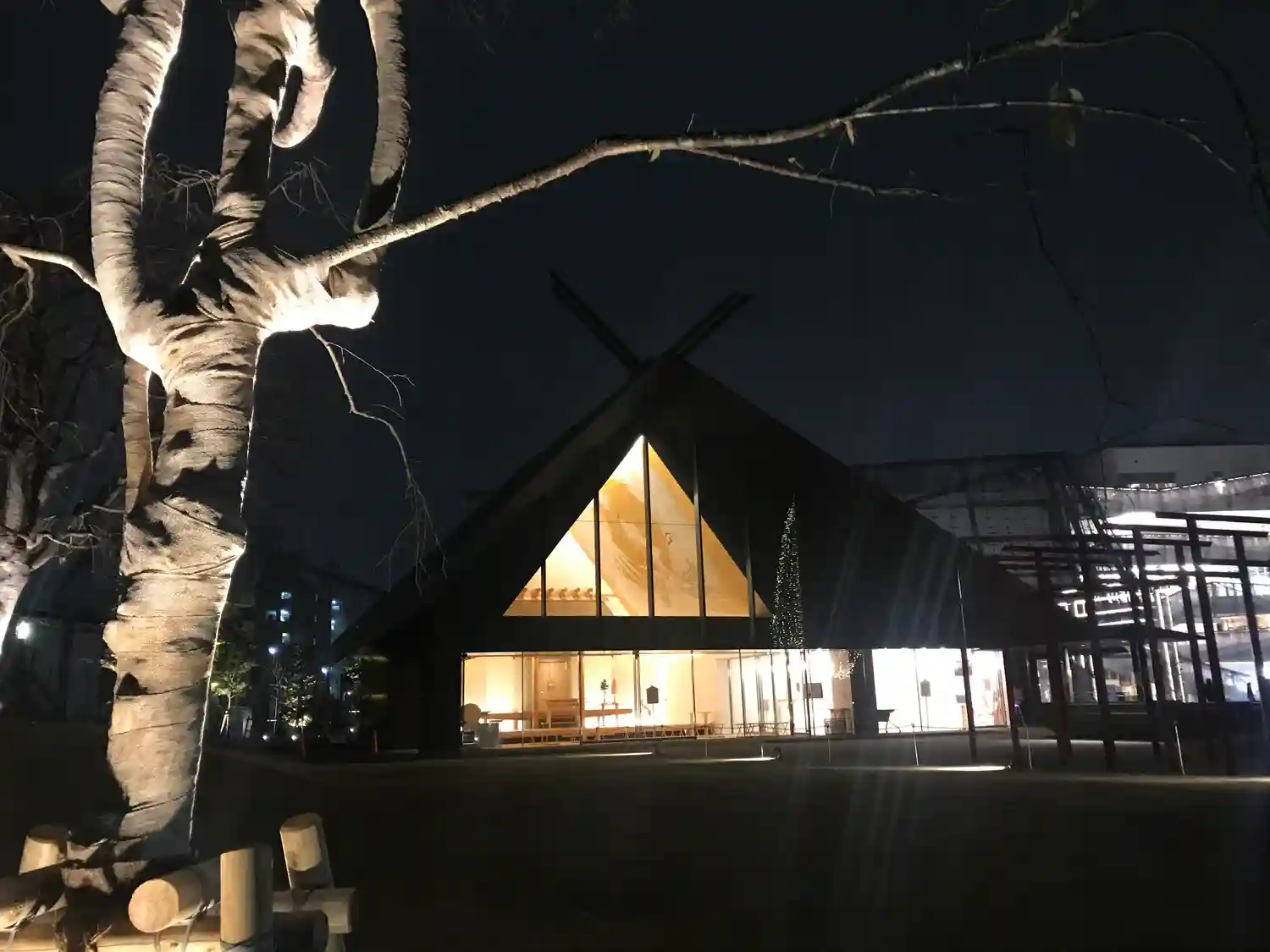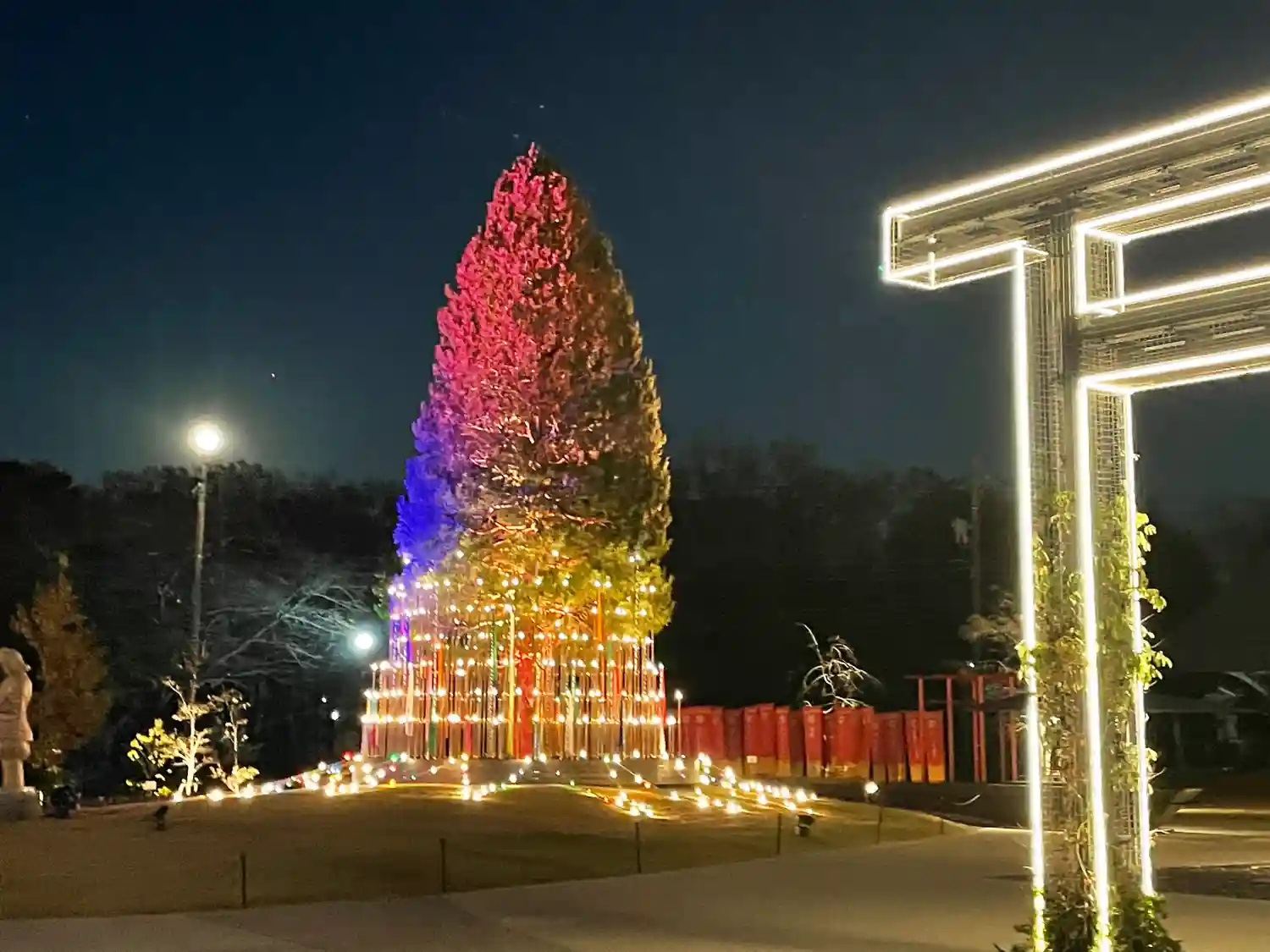 シンボルツリーは、ライトアップ仕様になっていました。