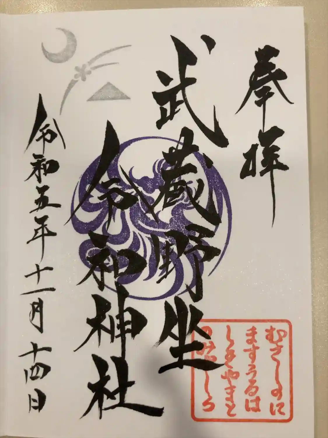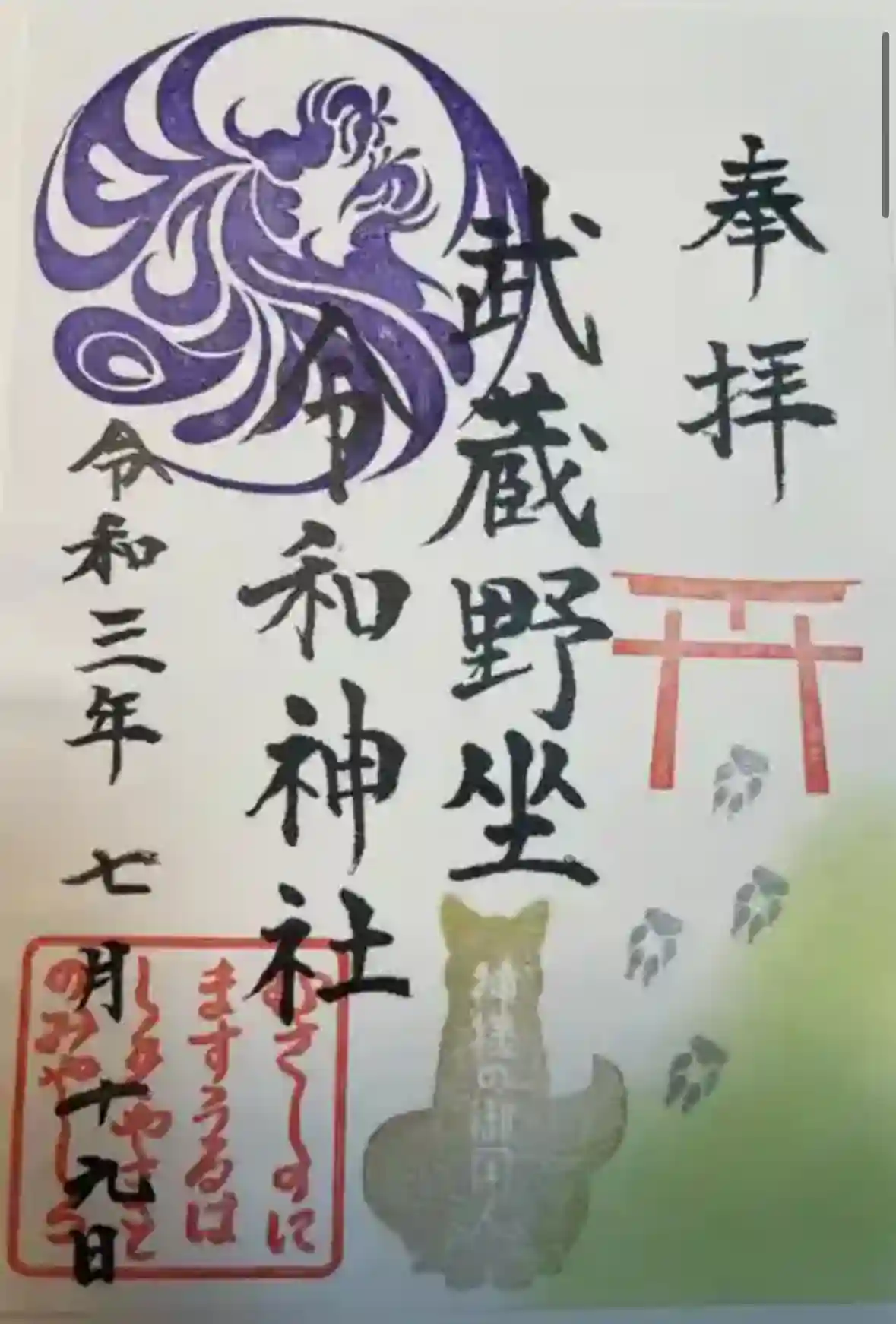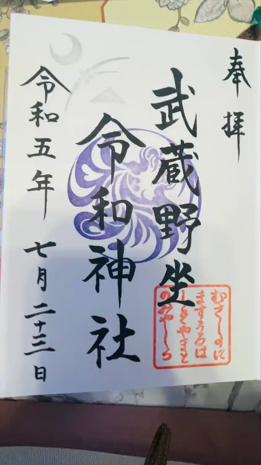 正式名:武蔵野坐令和神社(むさしのにますうるわしきやまとのみやしろ)