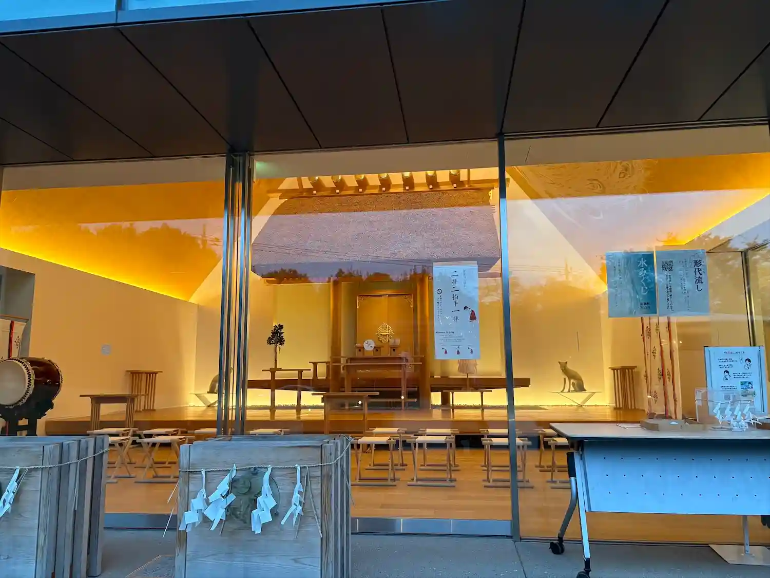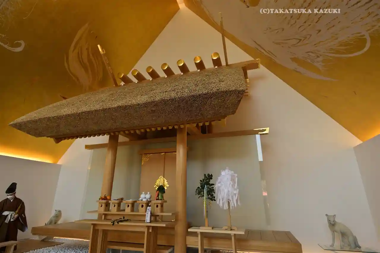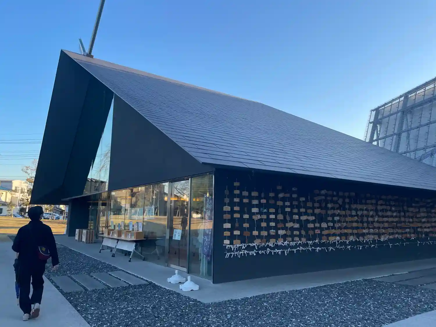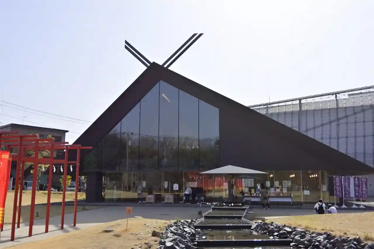 斬新な拝殿、社務所は隈研吾さんデザインで、アニメ…