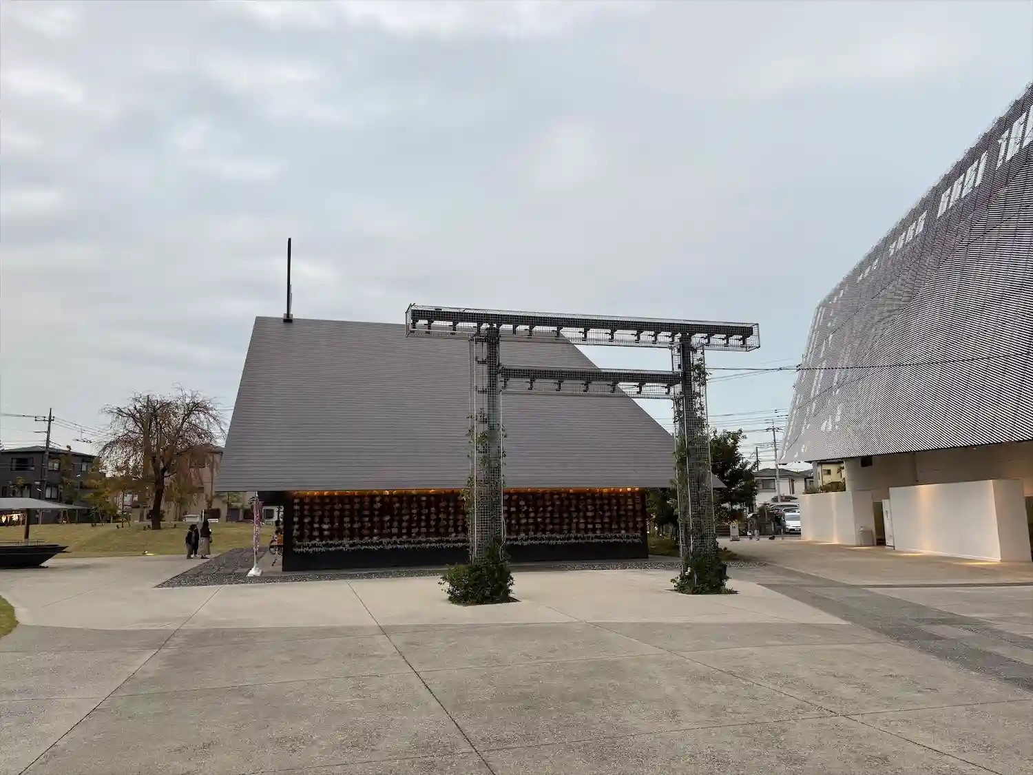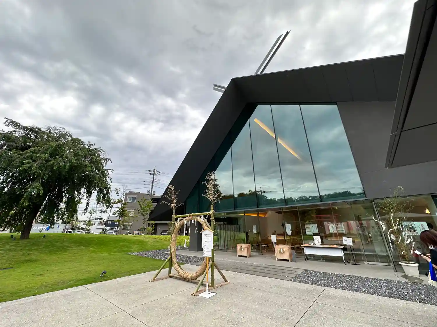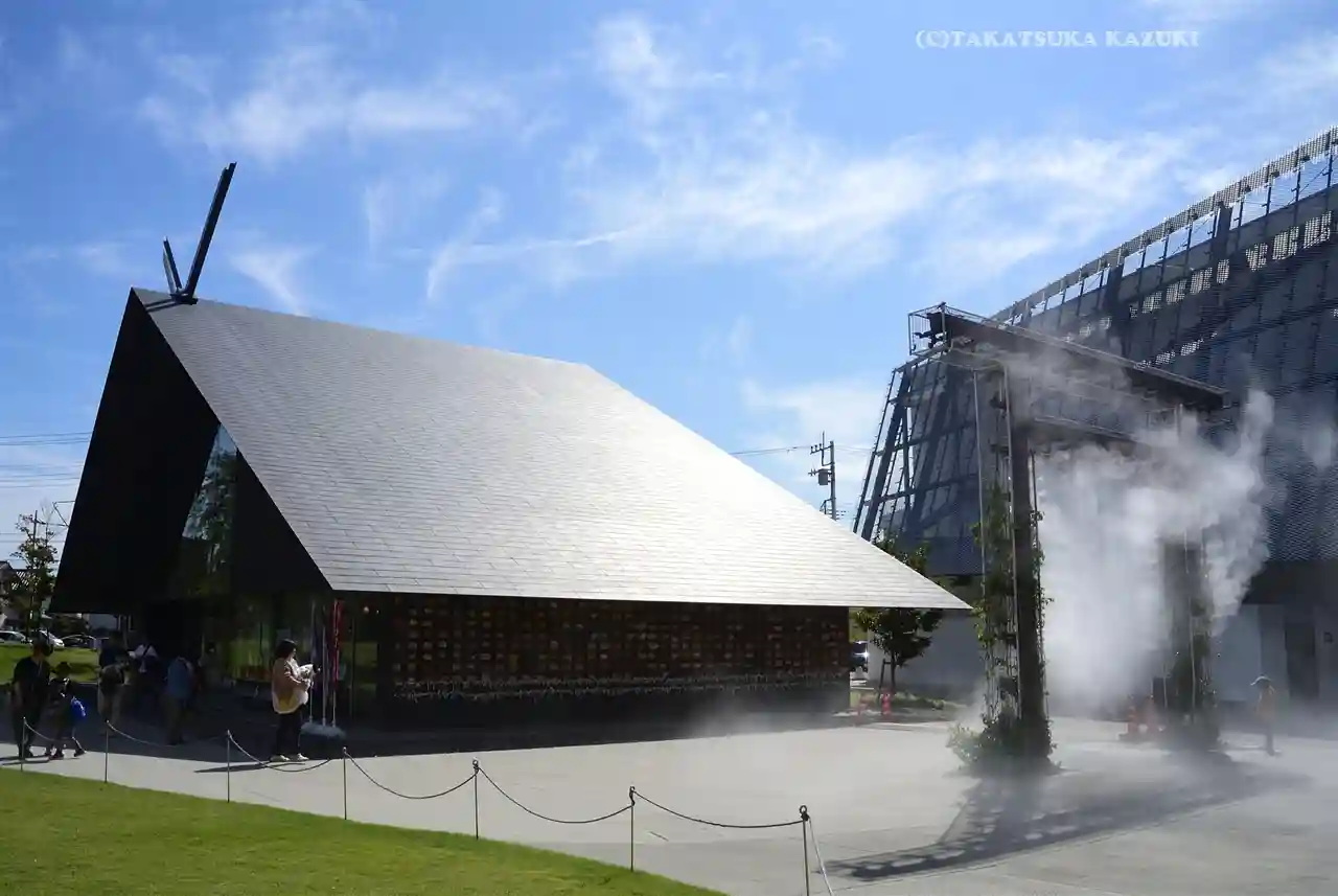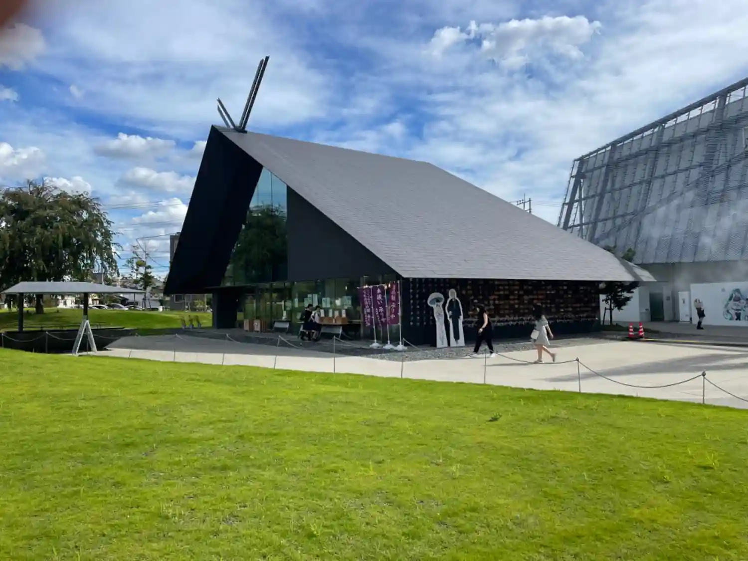 斬新な拝殿、社務所は隈研吾さんデザインで、アニメ…