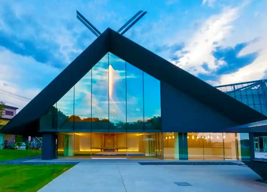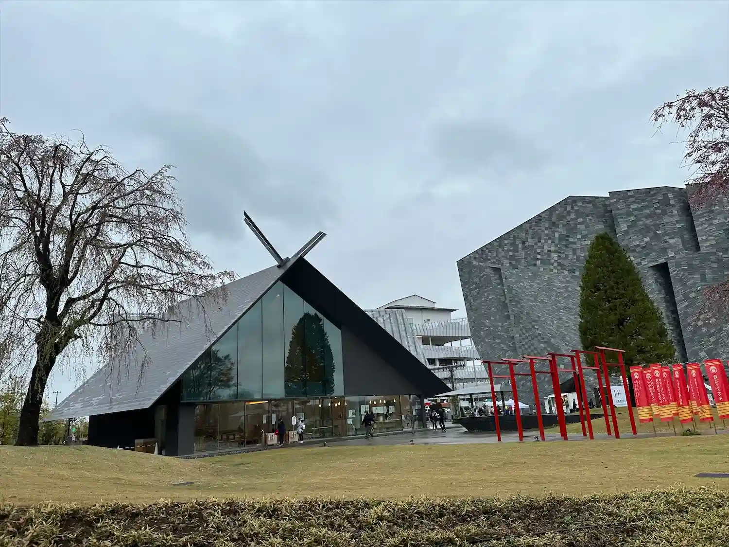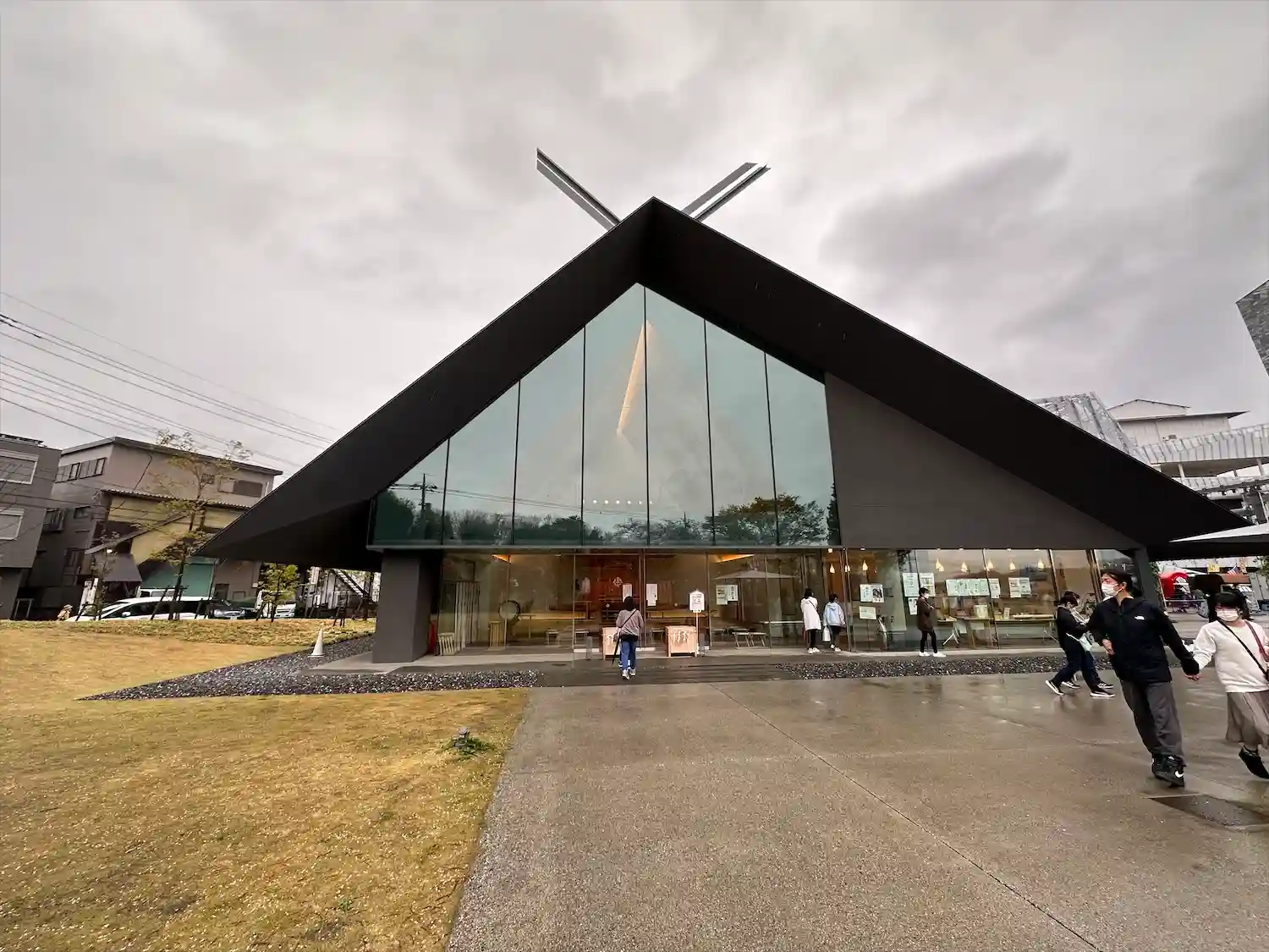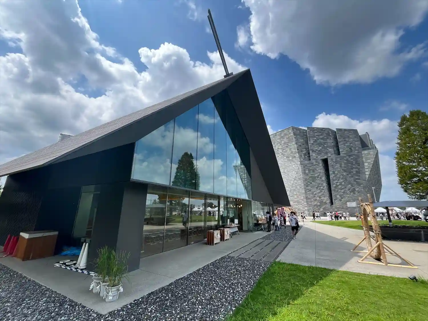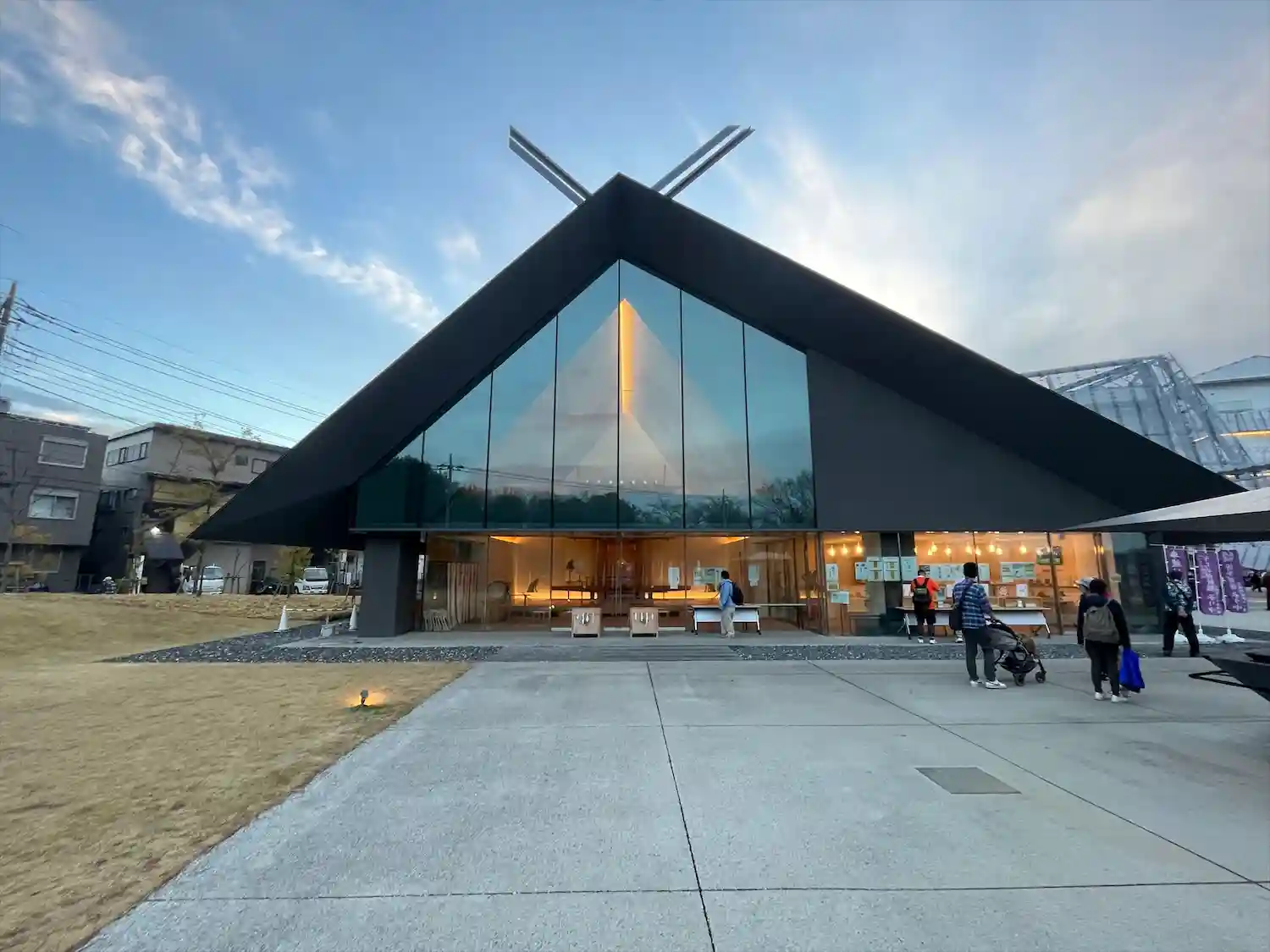 斬新な拝殿、社務所は隈研吾さんデザインで、アニメ…