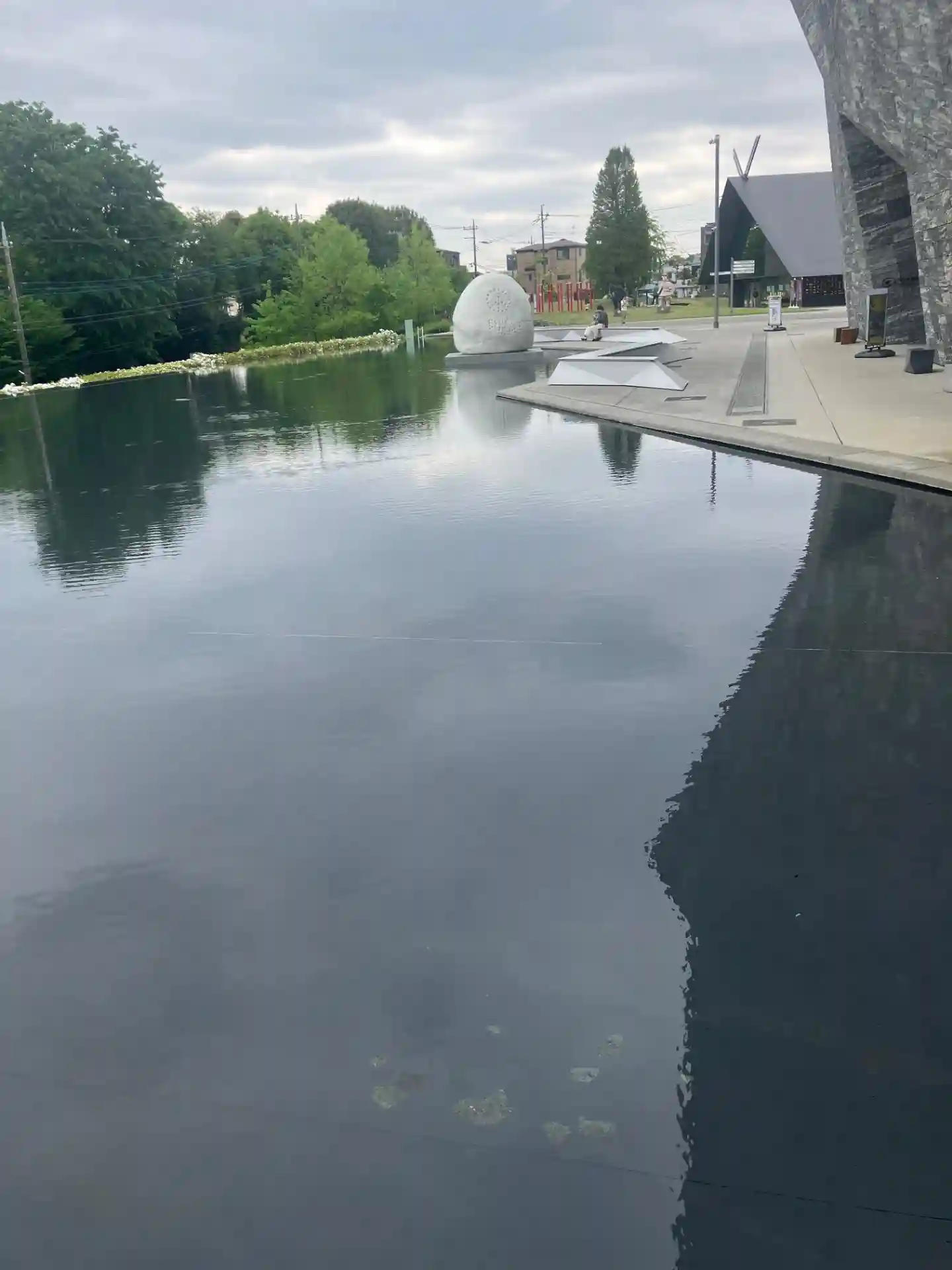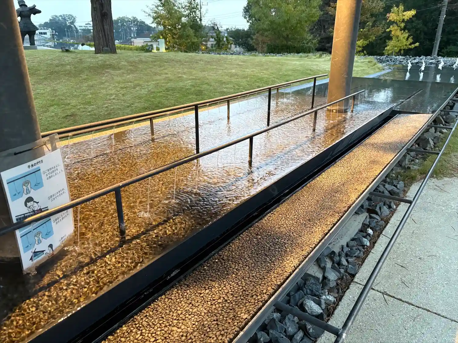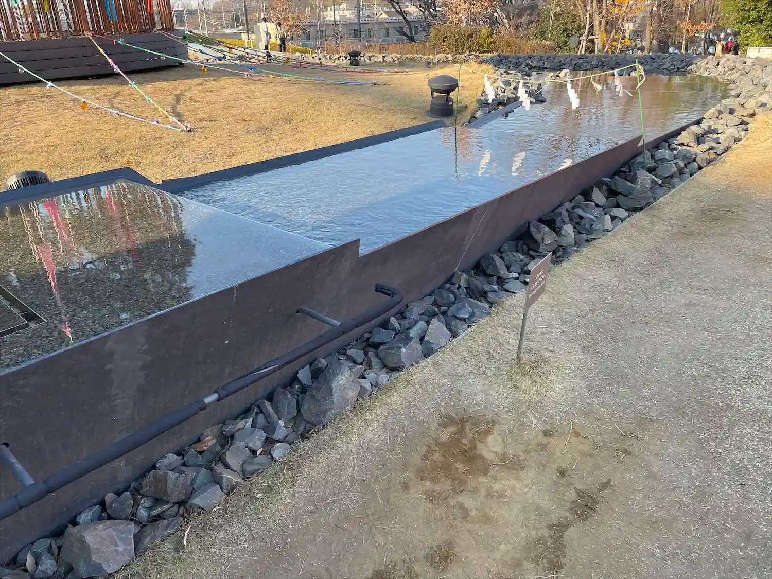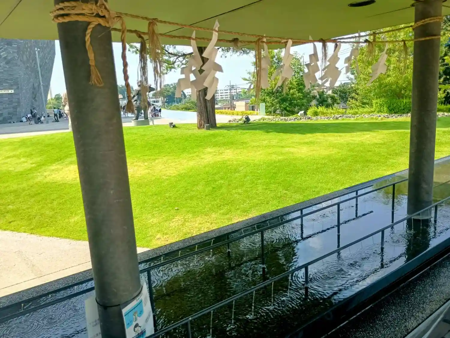 <全景>芝生があり水の流れる音が心地いいです。この辺りに座ってスケッチされてる人が何人かいました、芸術の秋。