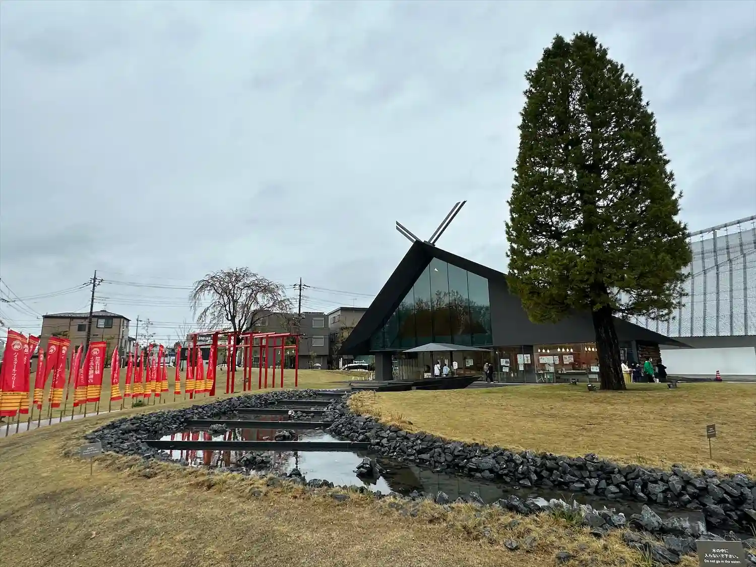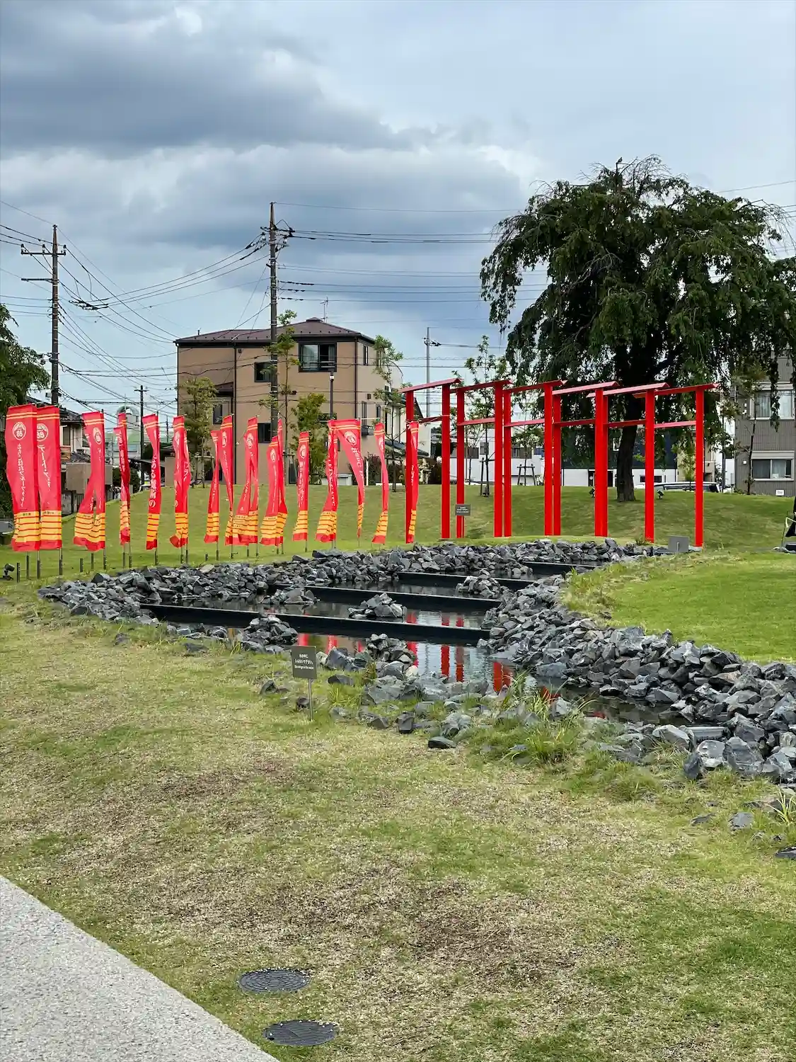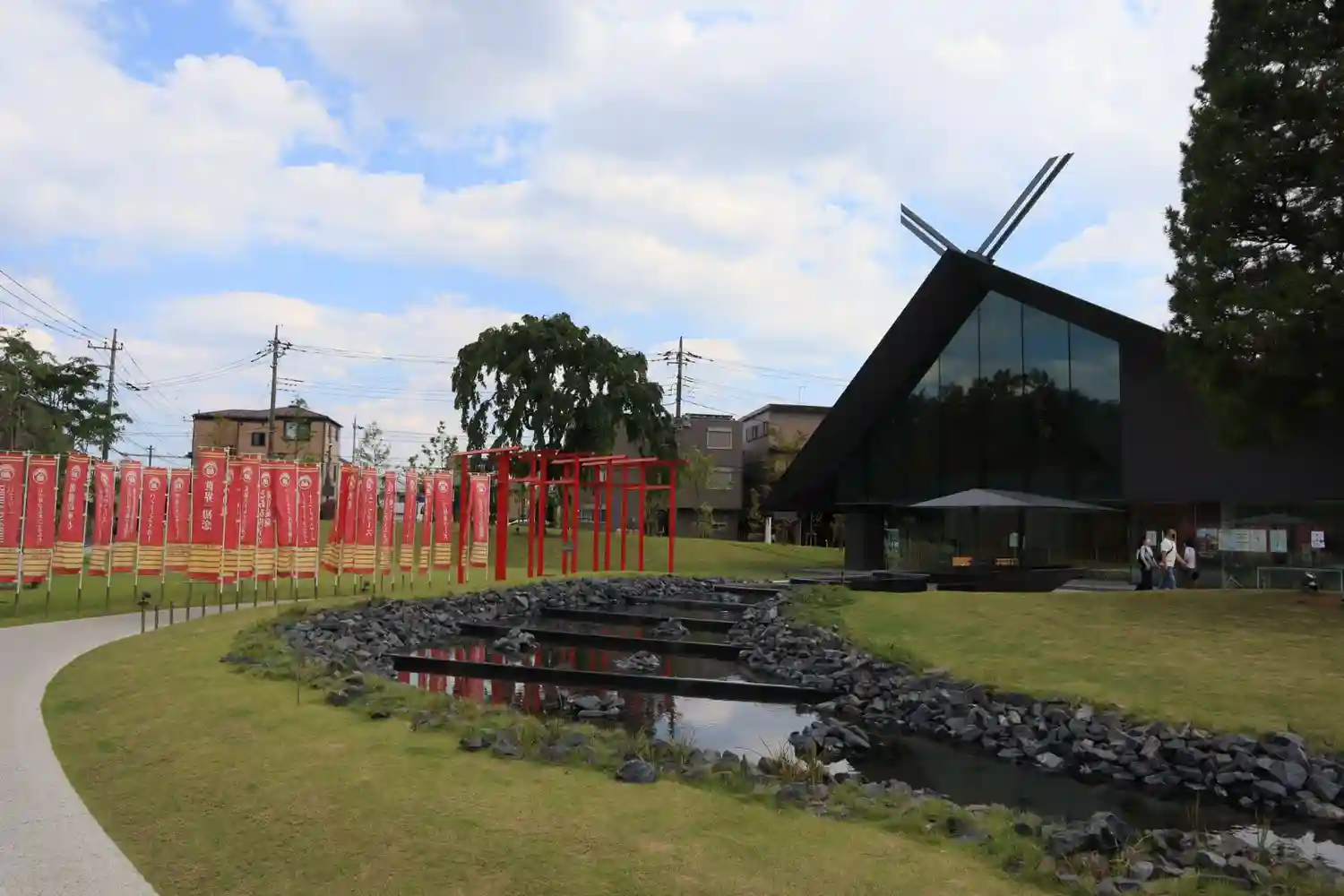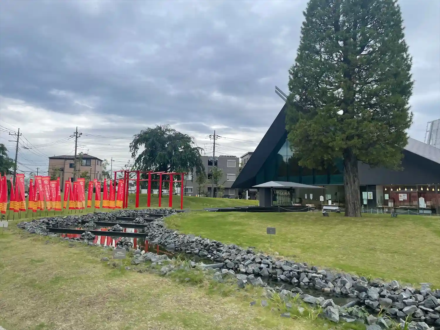 <全景>芝生があり水の流れる音が心地いいです。この辺りに座ってスケッチされてる人が何人かいました、芸術の秋。