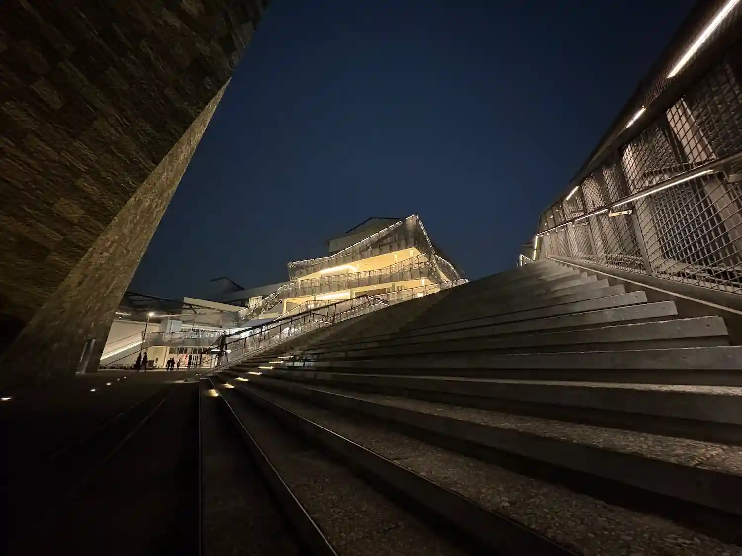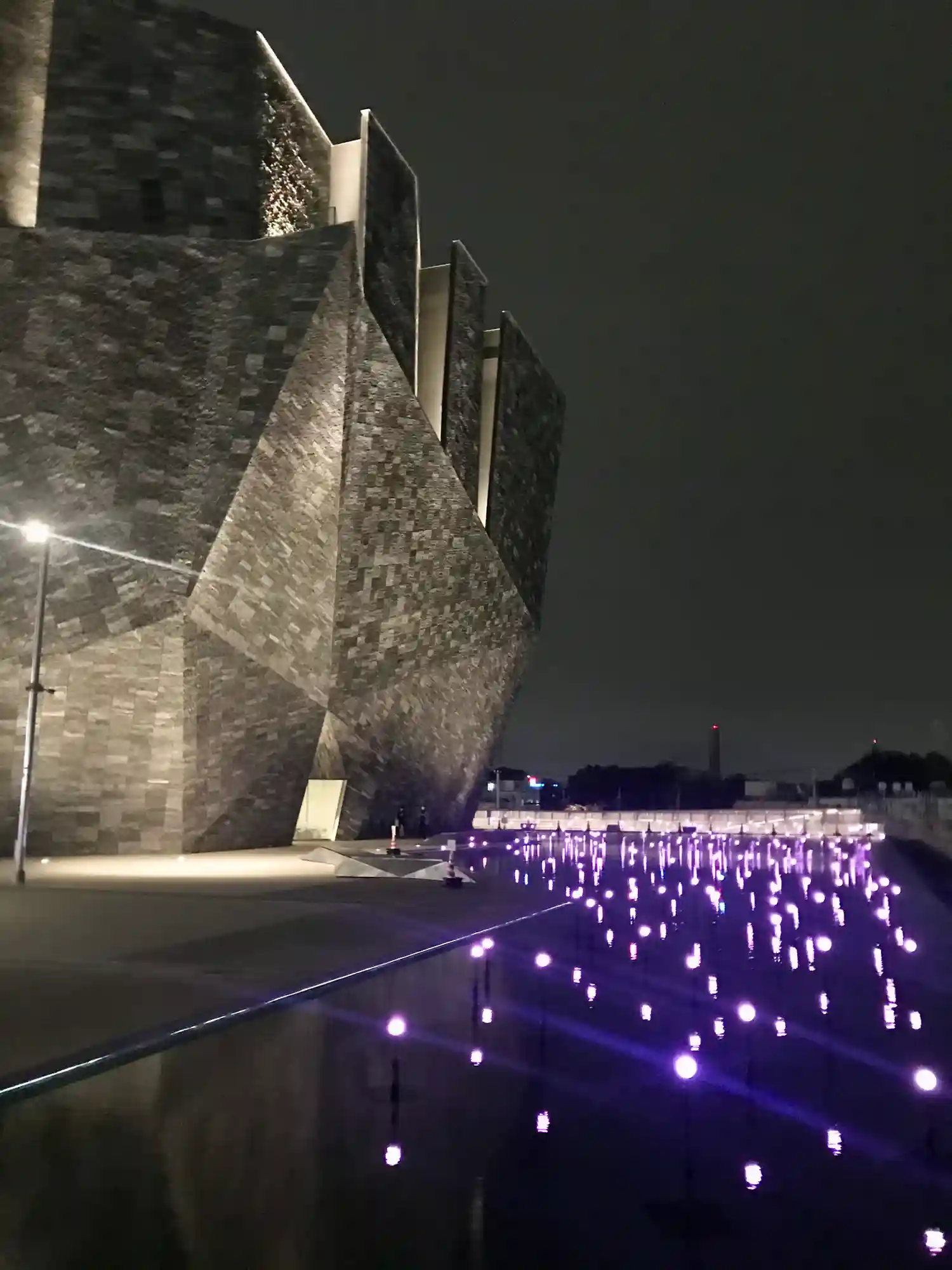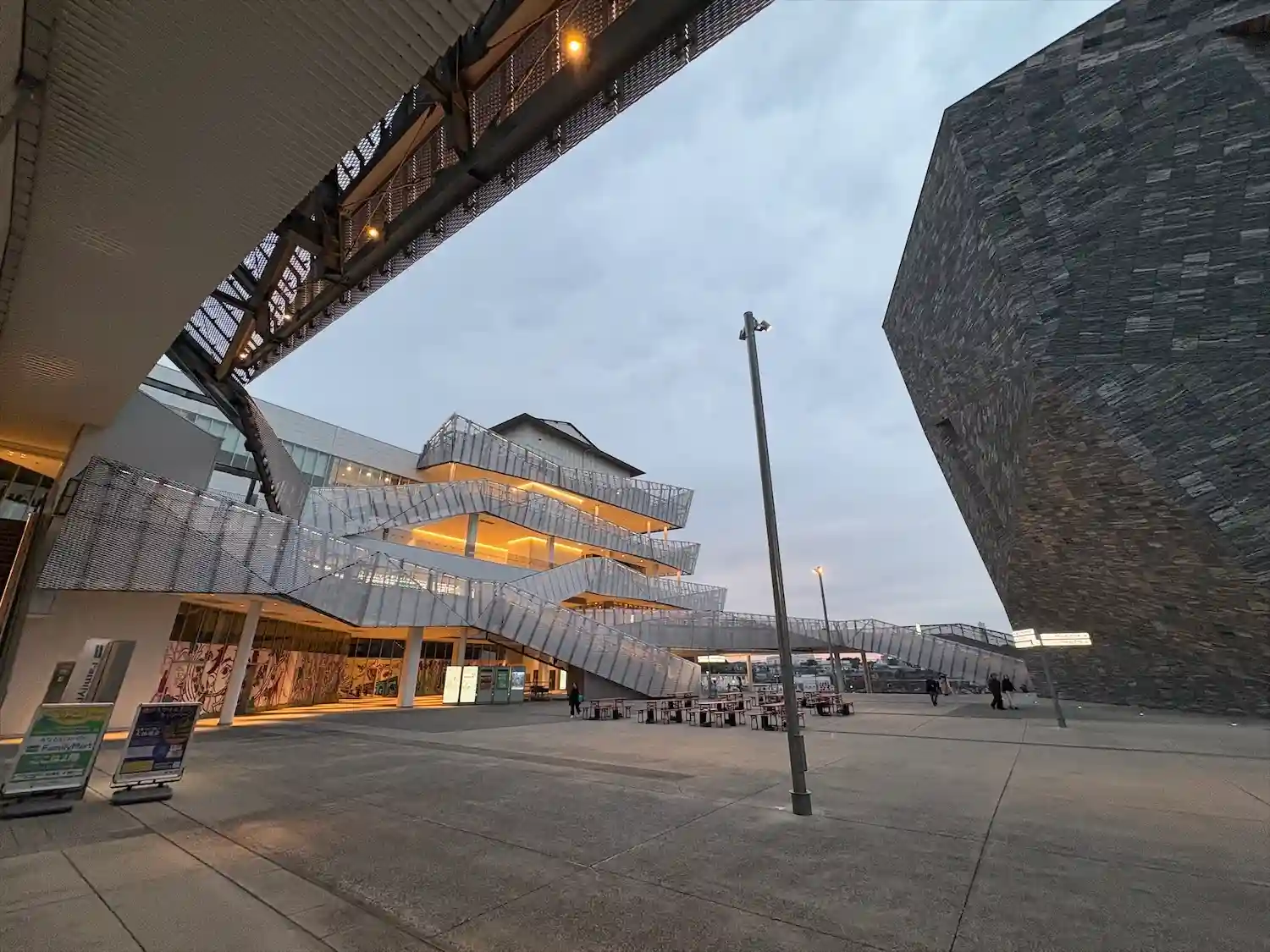 夕暮れの角川武蔵野ミュージアムは、要塞のようです。