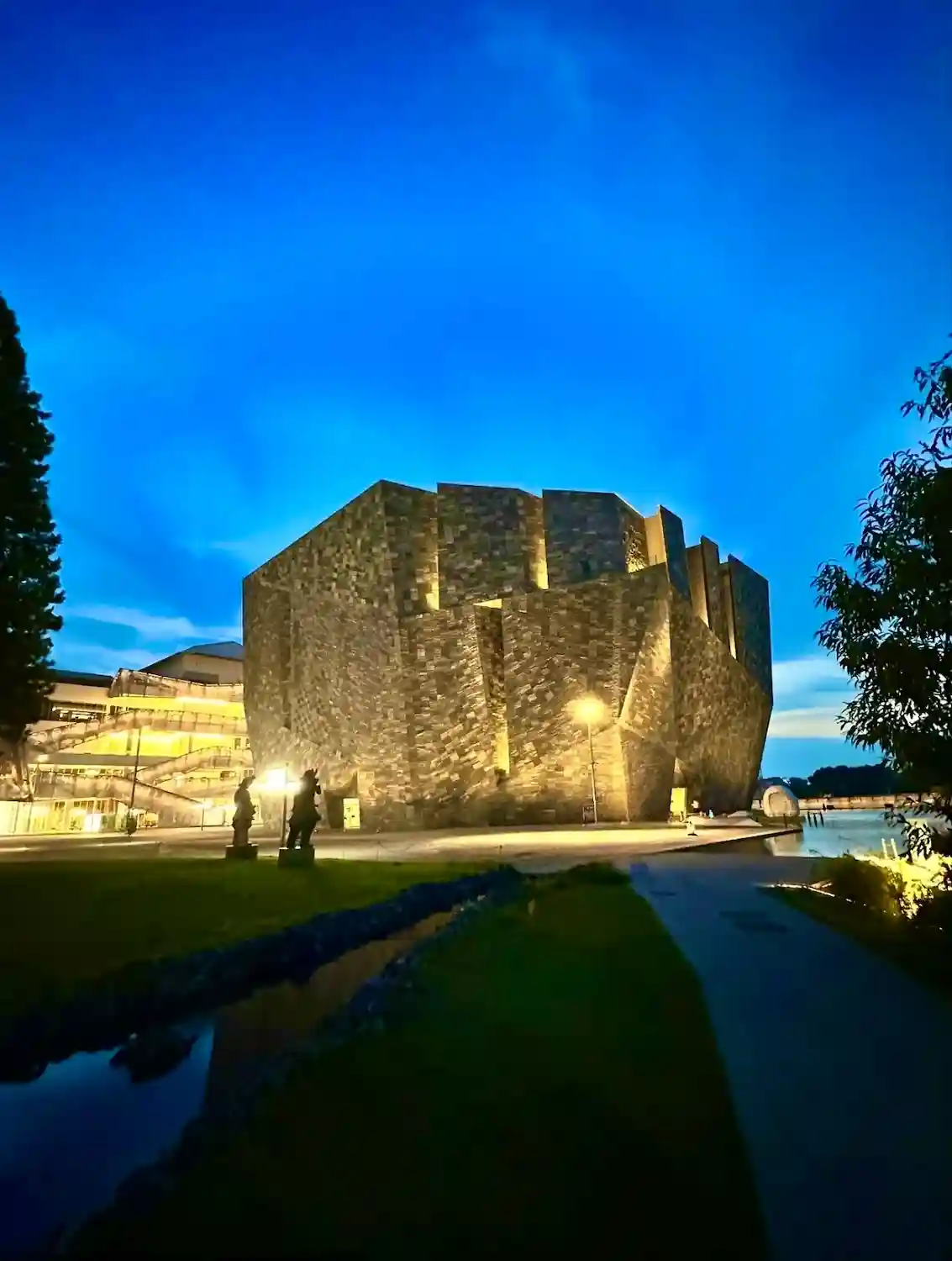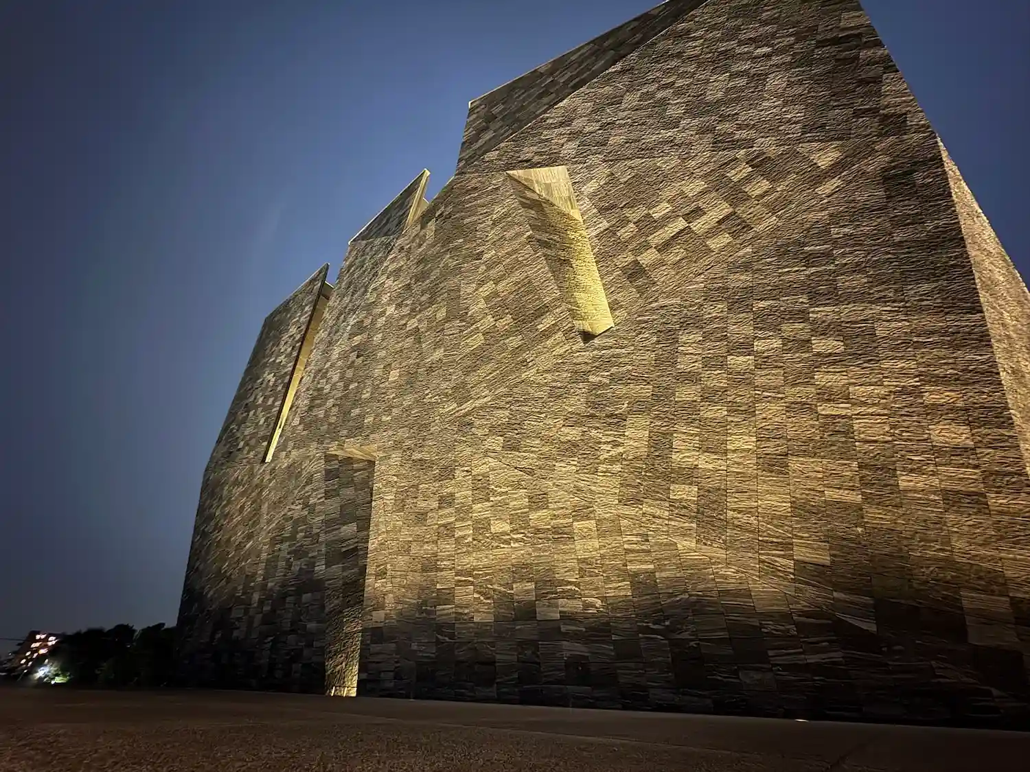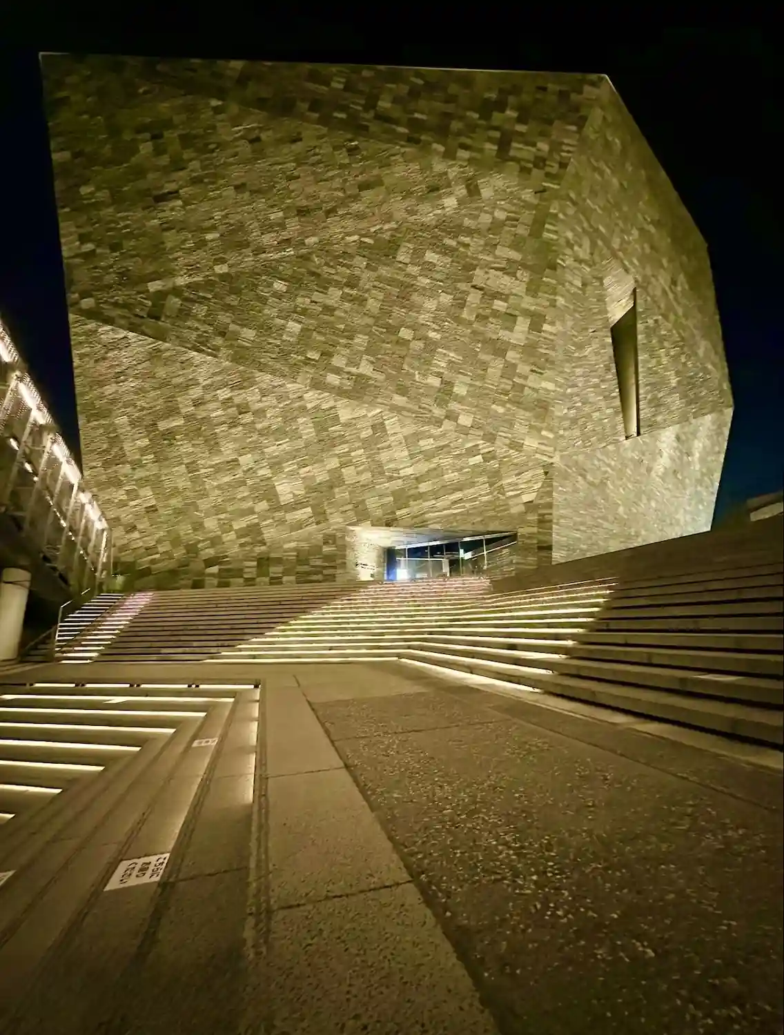 夕暮れの角川武蔵野ミュージアムは、要塞のようです。