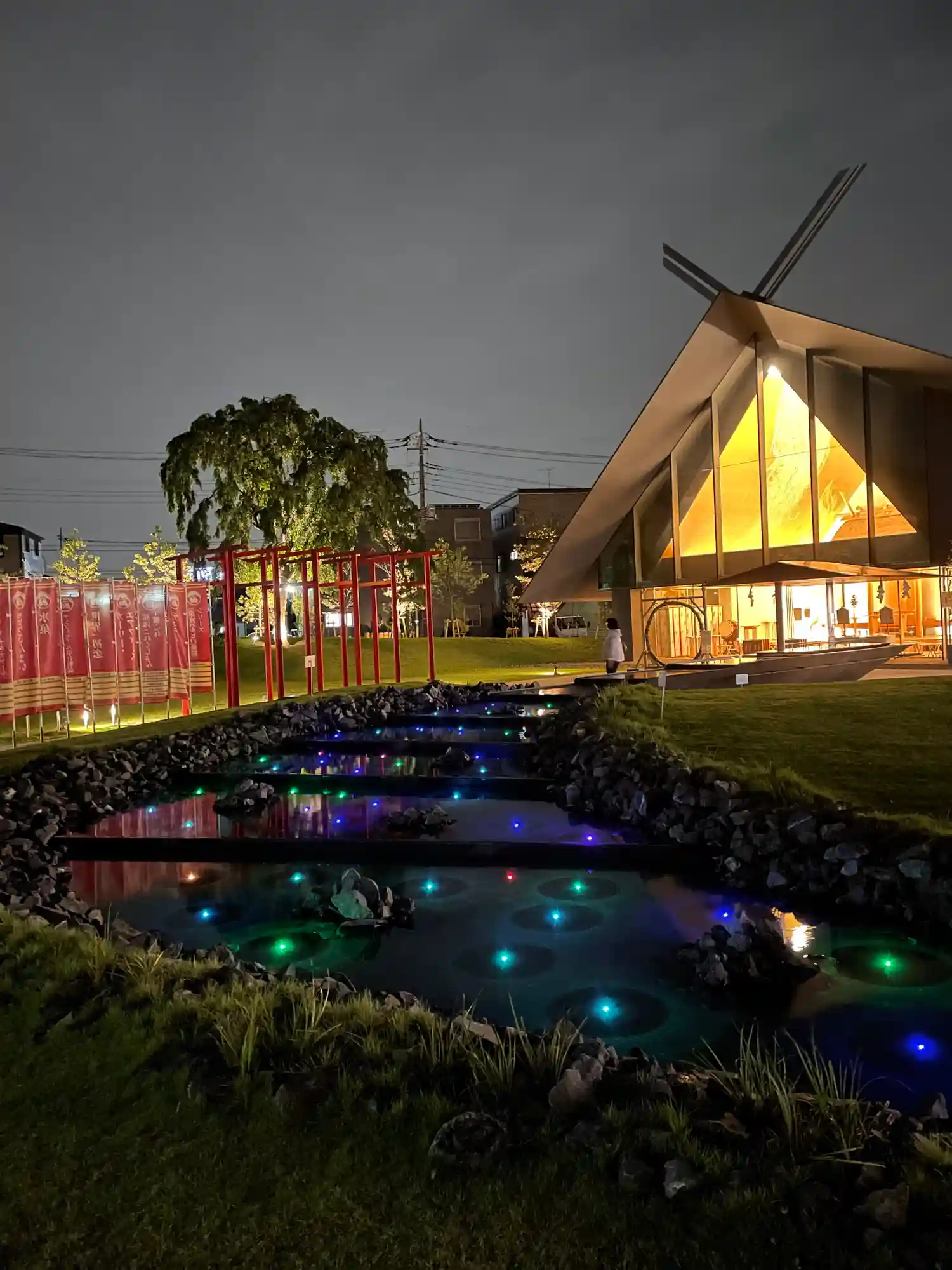 神社のあるサクラタウンはライトアップされています。