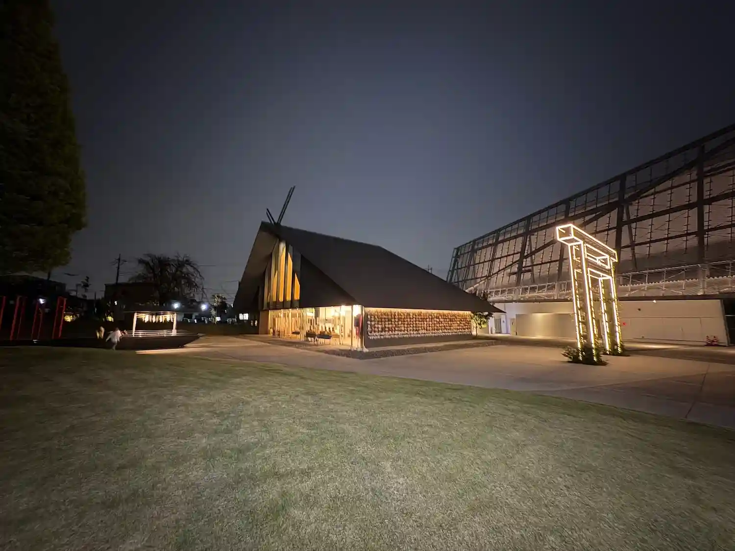 夜の神社は教会のように見えます。