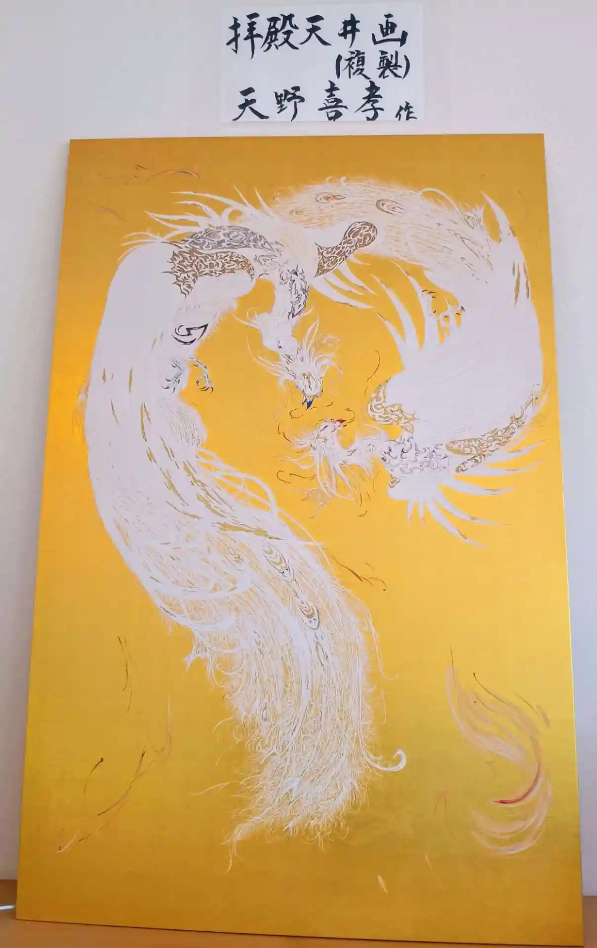 天井画 ガラス越しなので天気が良いと外景が映り込みます