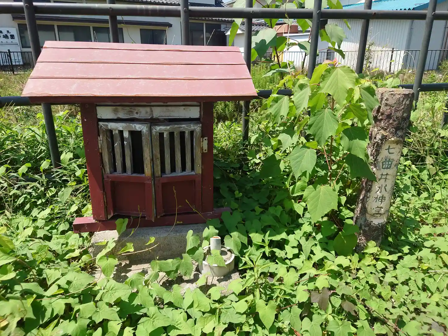 七曲井の外周に建てられた小さな祠です。水神様を祀っており、すぐ横には不老川が流れています。