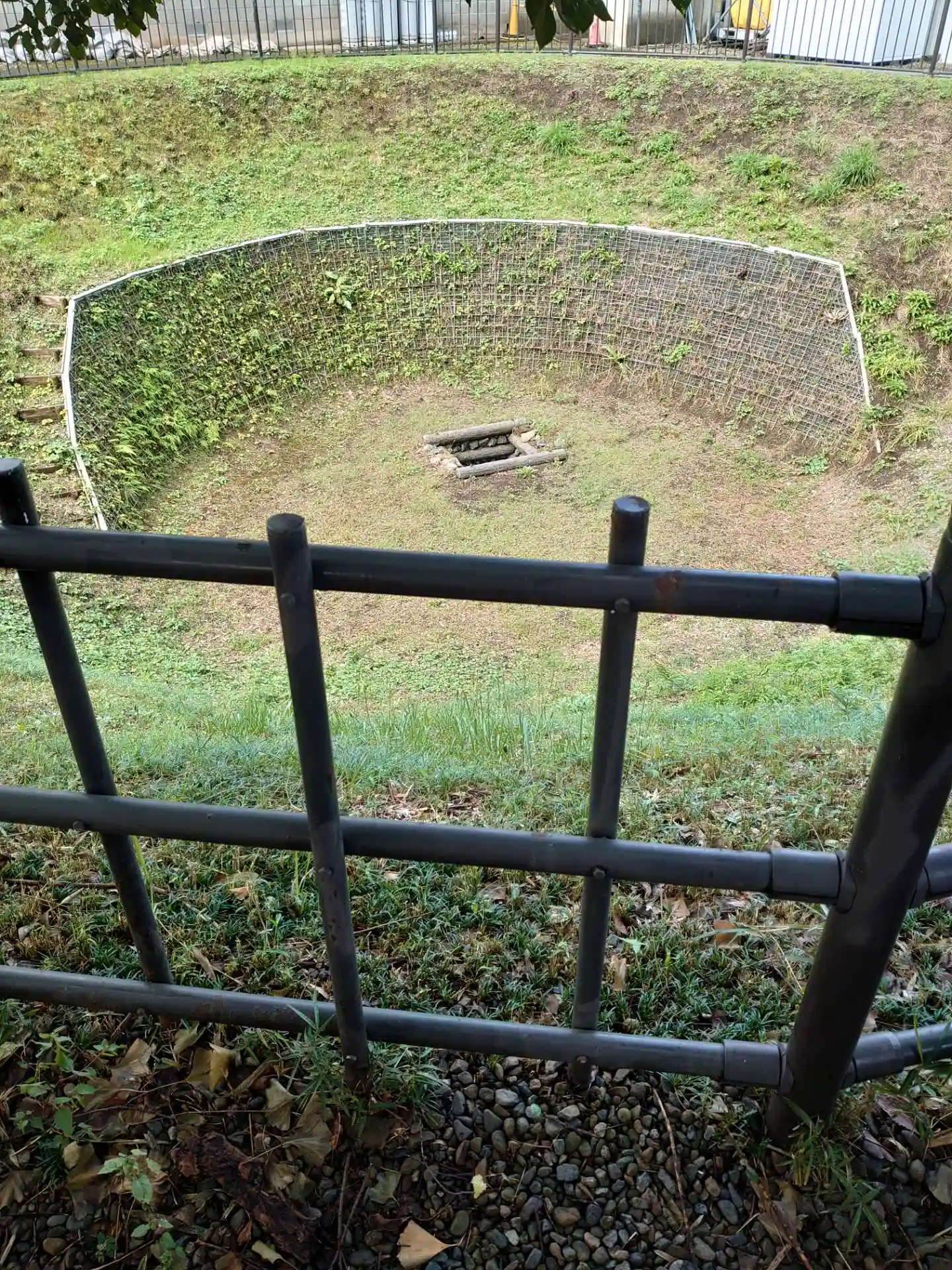 七曲りの井戸なんですが、草がすごすぎて原型がわからなくなってました😂すり鉢状に深くなっているはずなのにそれが全く感じられません。柵があるので落ちることはないと思いますが、、、