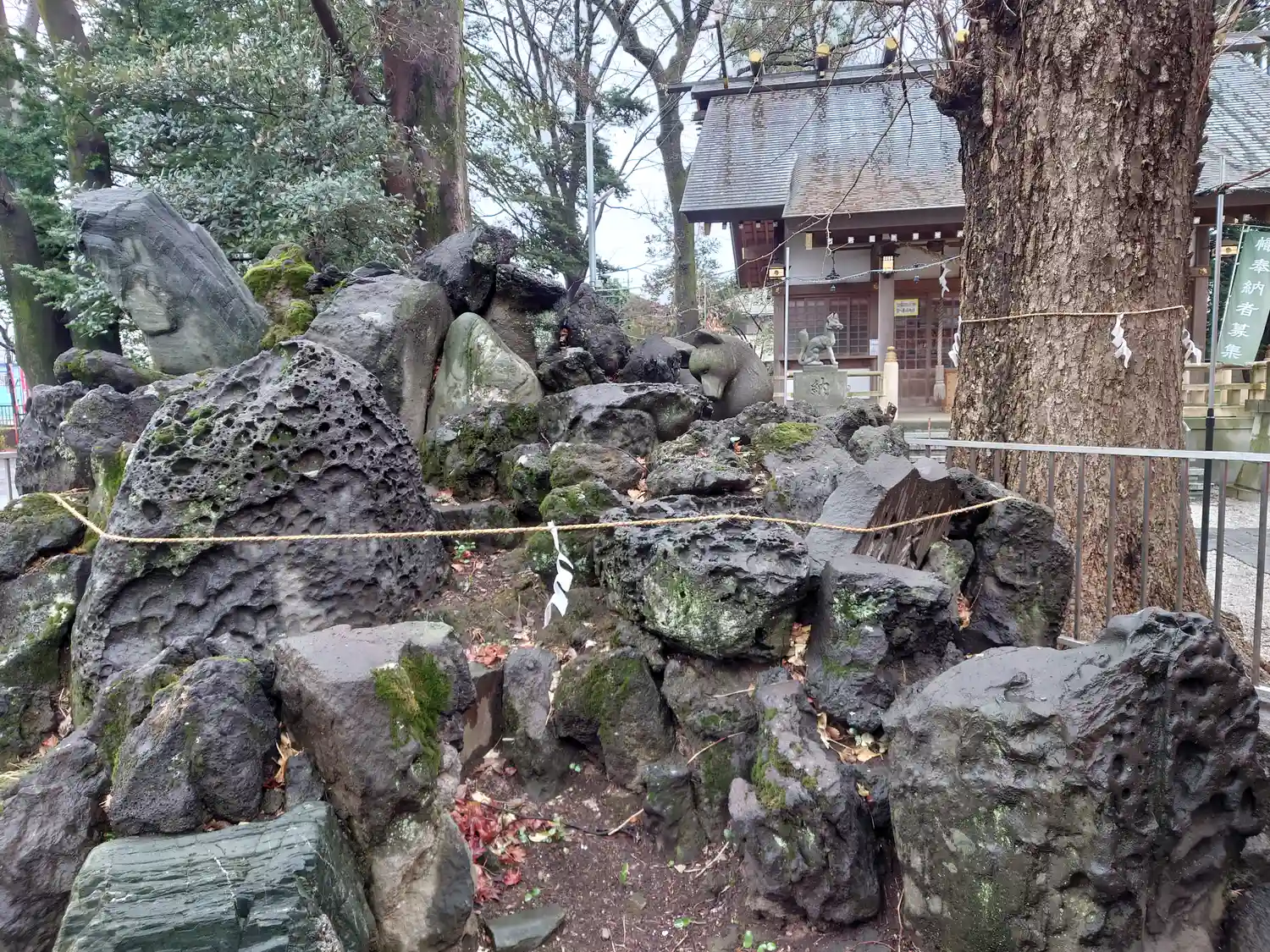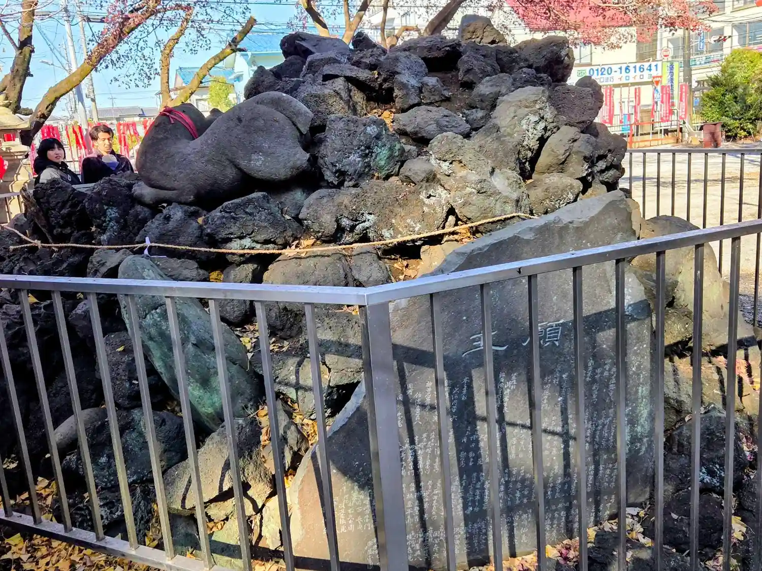 溶岩によって築かれた一対のもの。塚の上には狐像が置かれている。