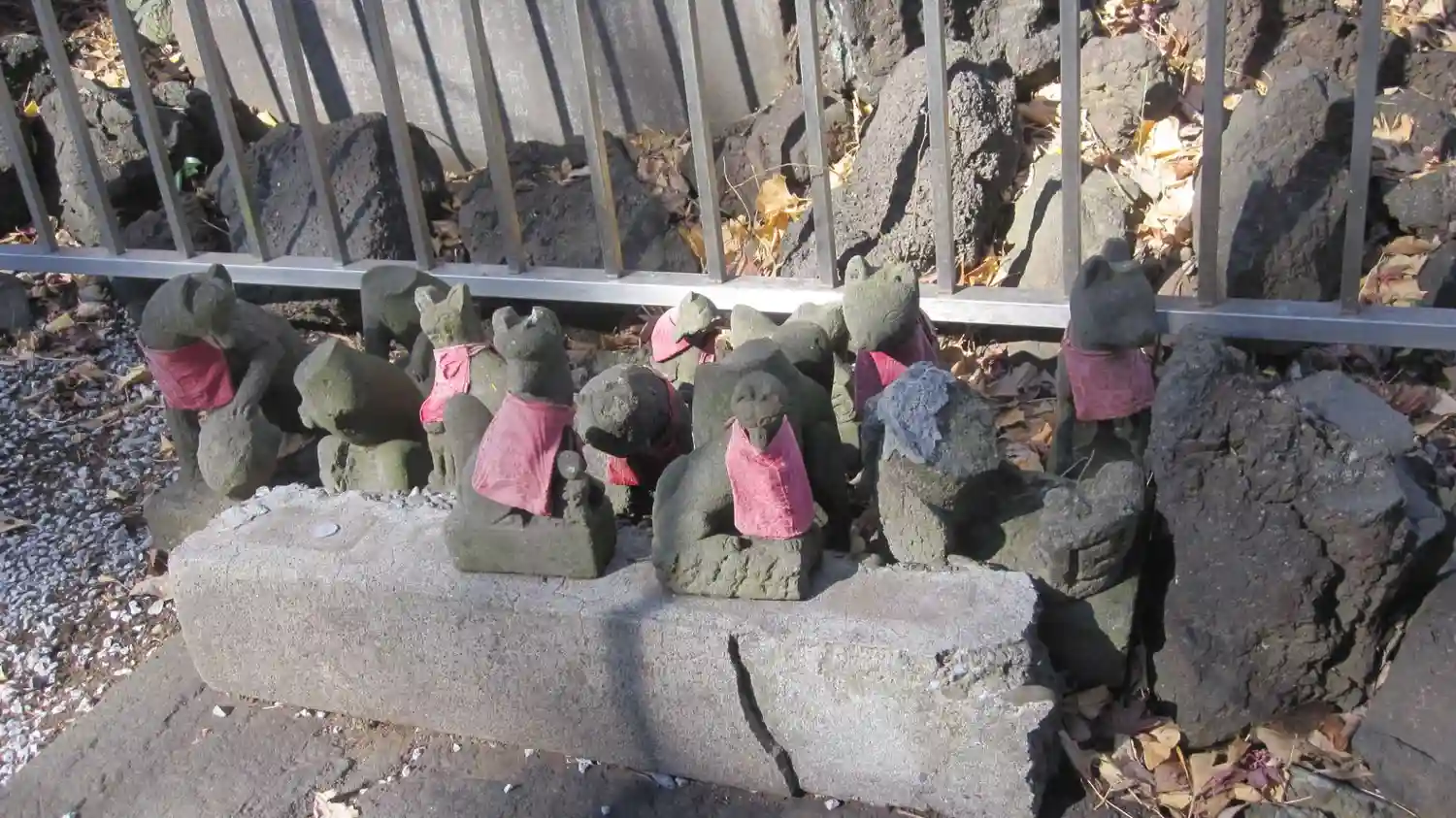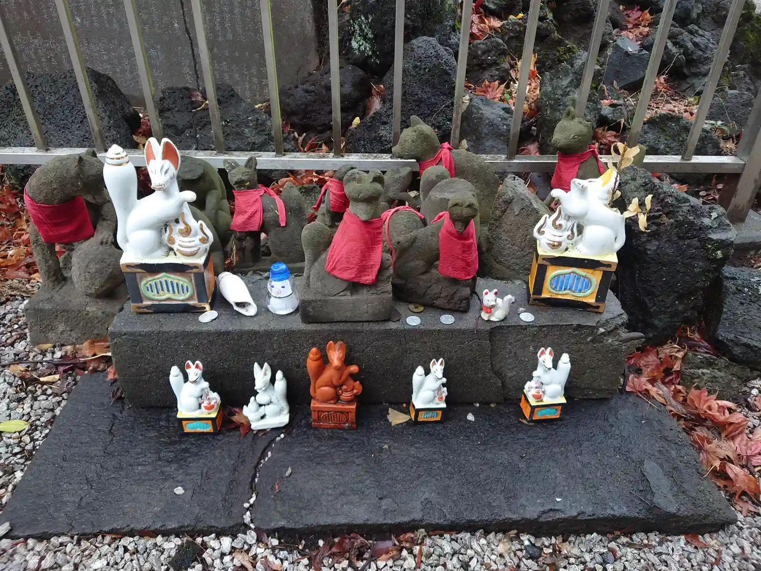 お狐さまに混じって、招き猫やお猿さんがいます(*´ω`*)