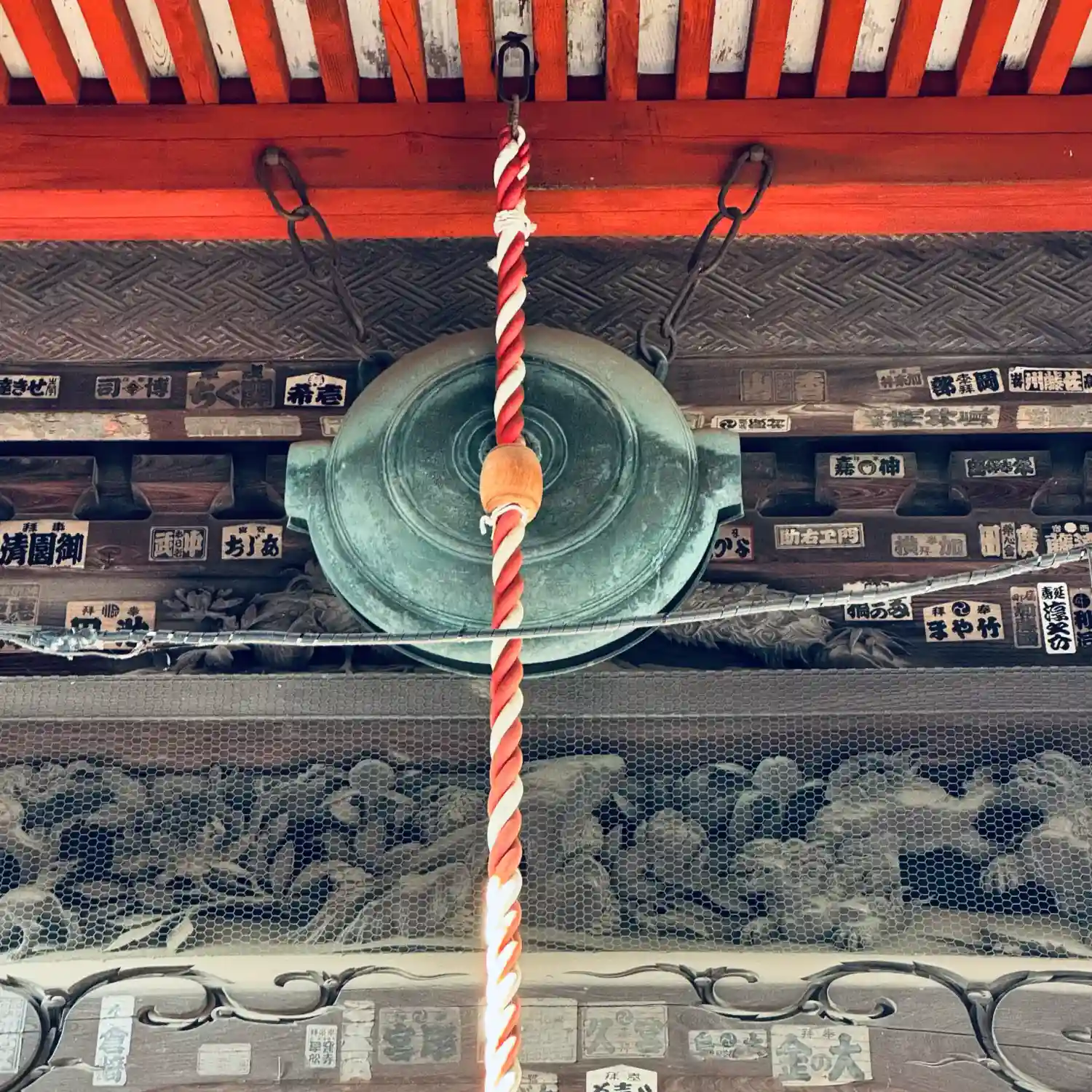 欄間の龍:観音堂の虹梁や欄干に見られる彫刻は精巧なもので、龍や獅子が彫られています✨