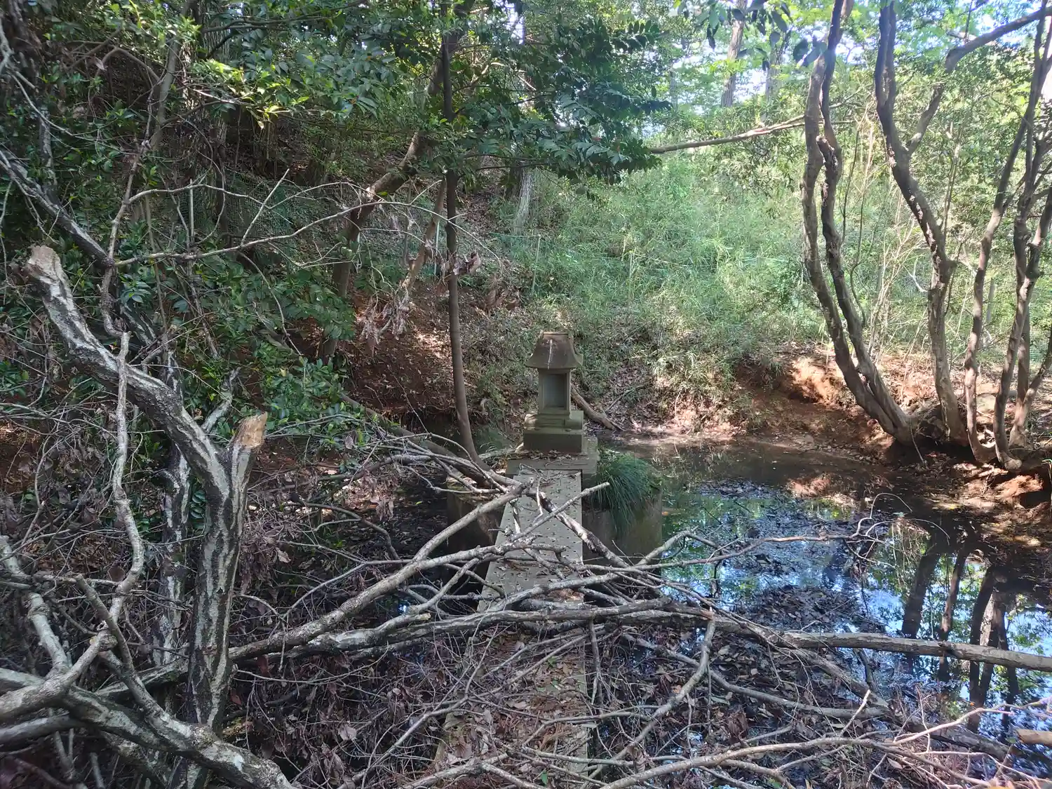 池と祠が見えてきました。