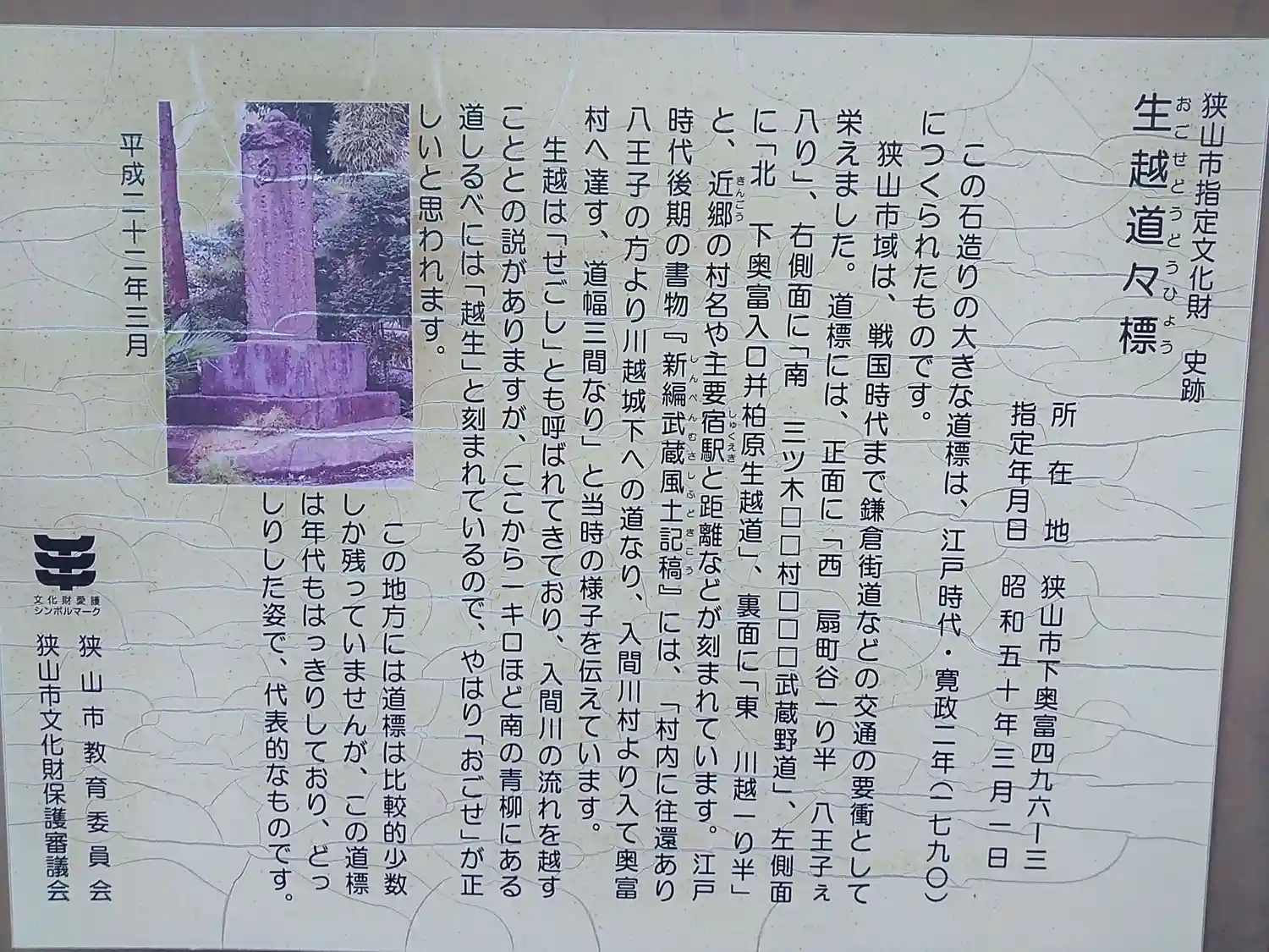 ①生越道道標 案内板