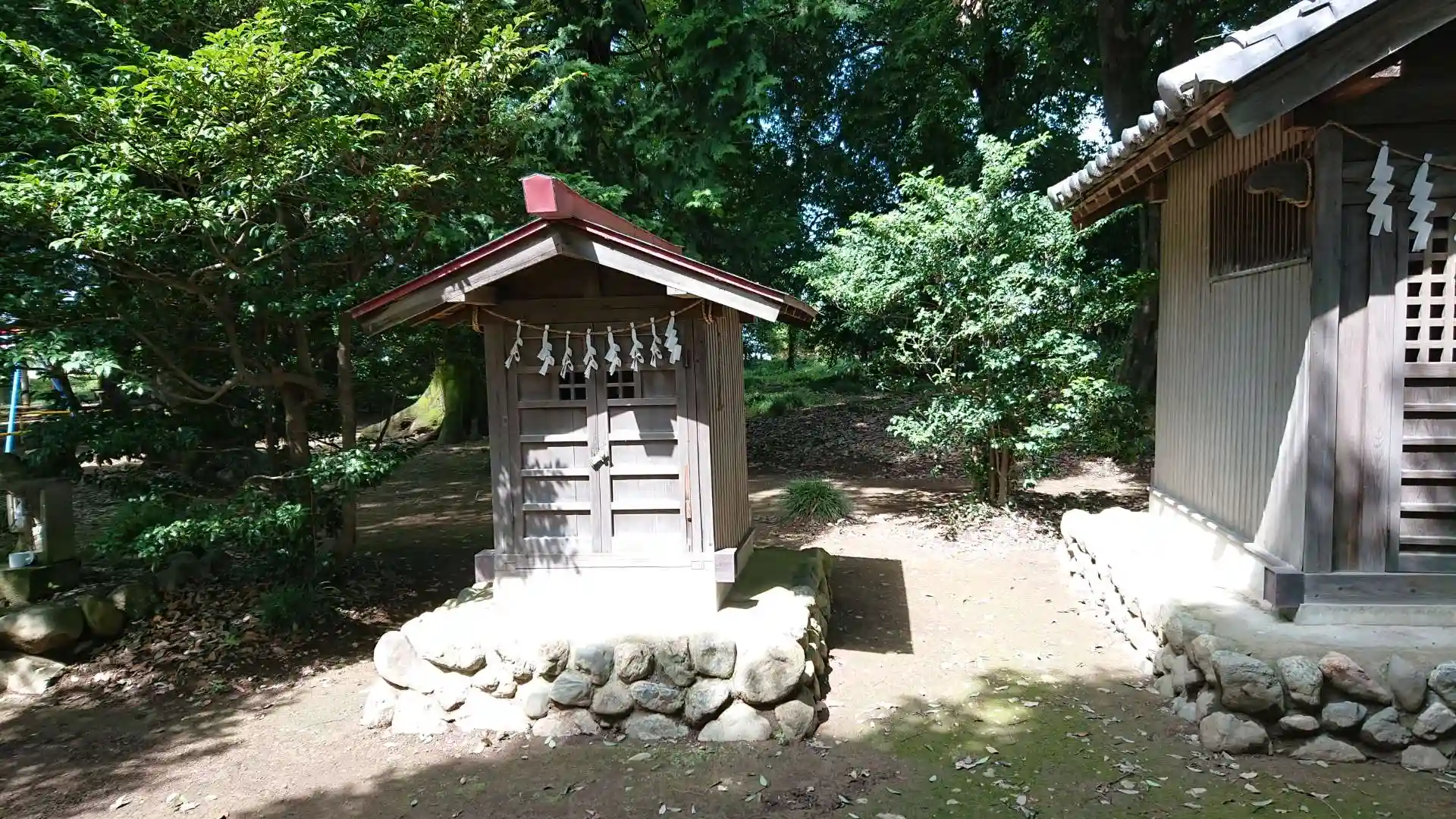田園の中鎮座する神社。のどかな風景とは似つかず、3分に一度、近くの入間基地からか飛行機が上空を旋回して轟音を轟かせる。神社は雰囲気が良く神主様も気さくな方で色々お話を伺えました。賽銭箱が埋め込み式で拝殿がすっきり見える。境内社も多いが石碑の境内社は初めて見たかも。