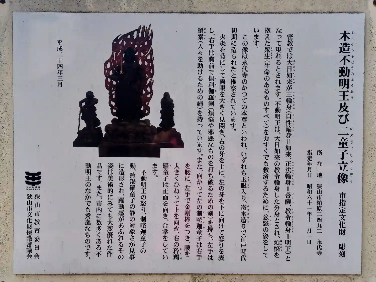 木造不動明王及び二童子立像は狭山市指定文化財