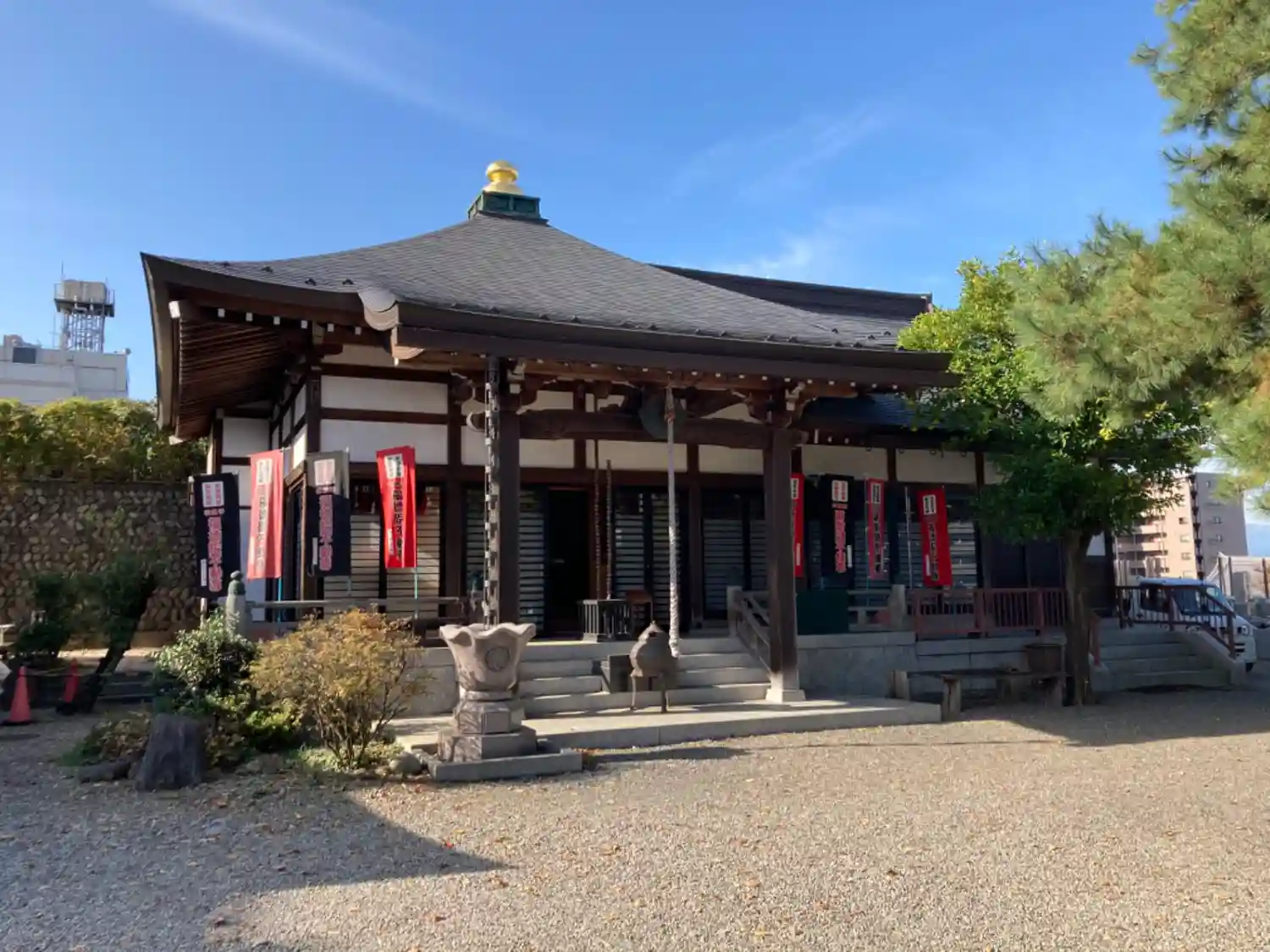 宅地に囲まれた寺院です。