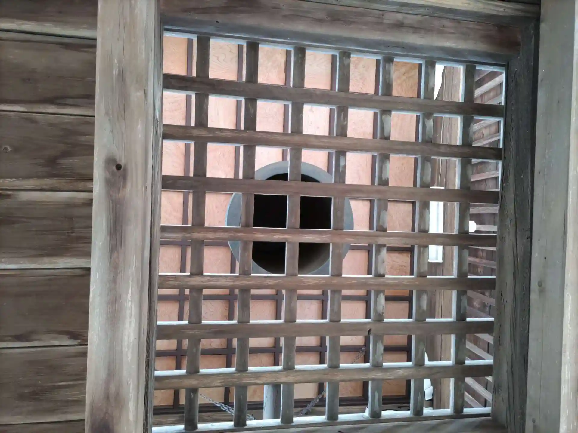 山門の上は、鐘釣堂。鐘釣を下から眺めた。
