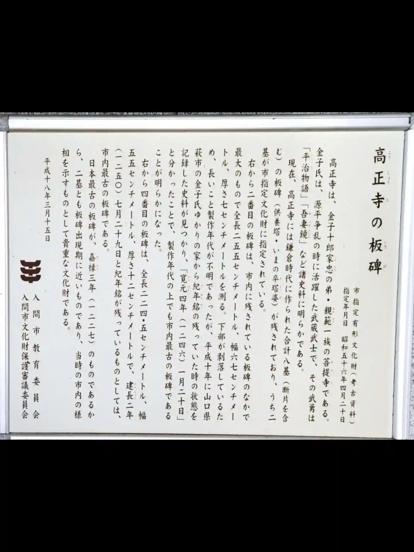 石のお塔婆の場所に、歴史の説明書看板