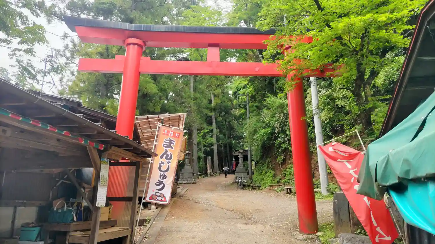 狭い山道を登りますが、竹寺の方が秘境感はあるかも。駐車場から参道を少し歩きます。