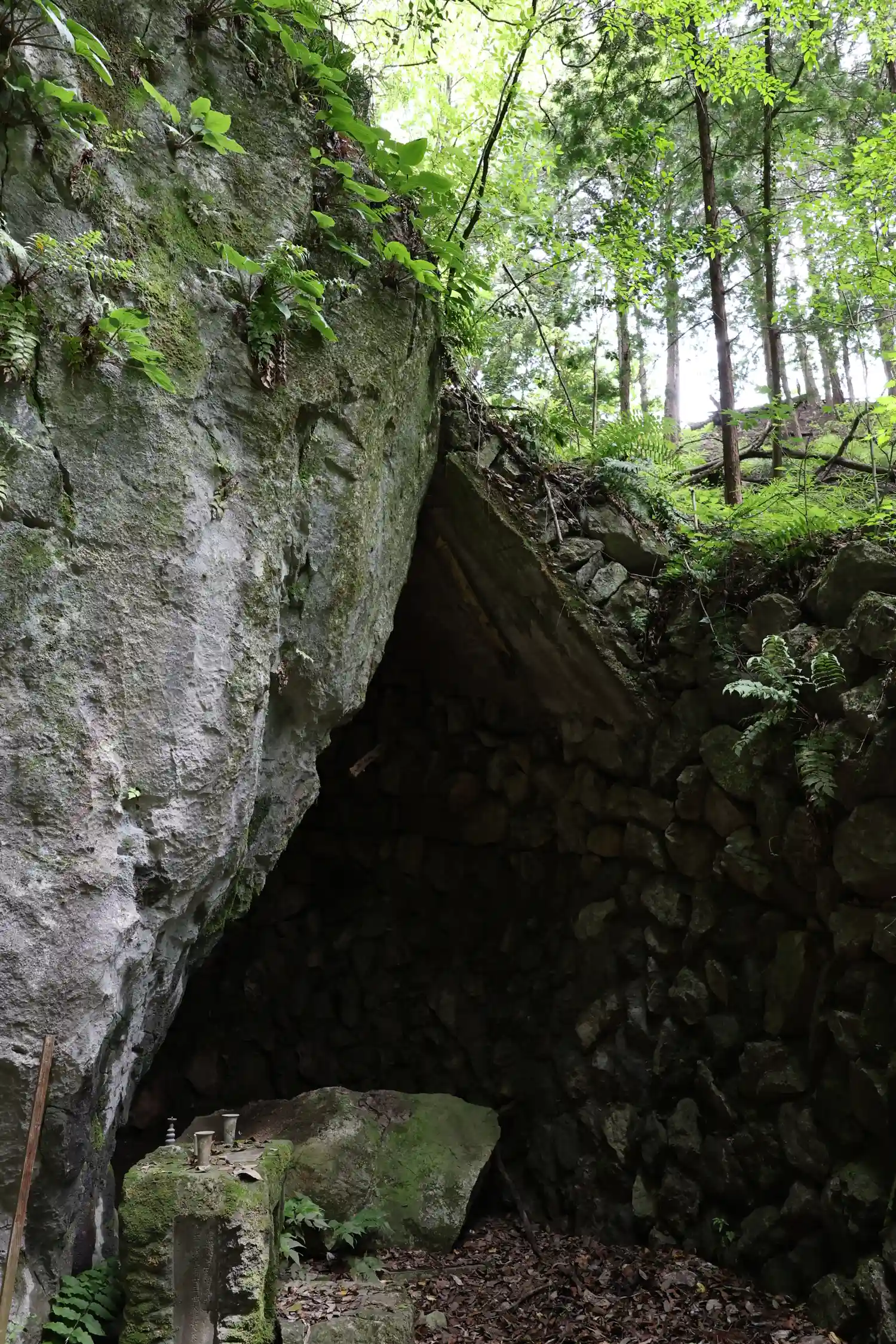 法光寺裏手の石灰山中腹付近に県の重要文化財に指定された岩殿観音窟石龕がありお参りしました😊
