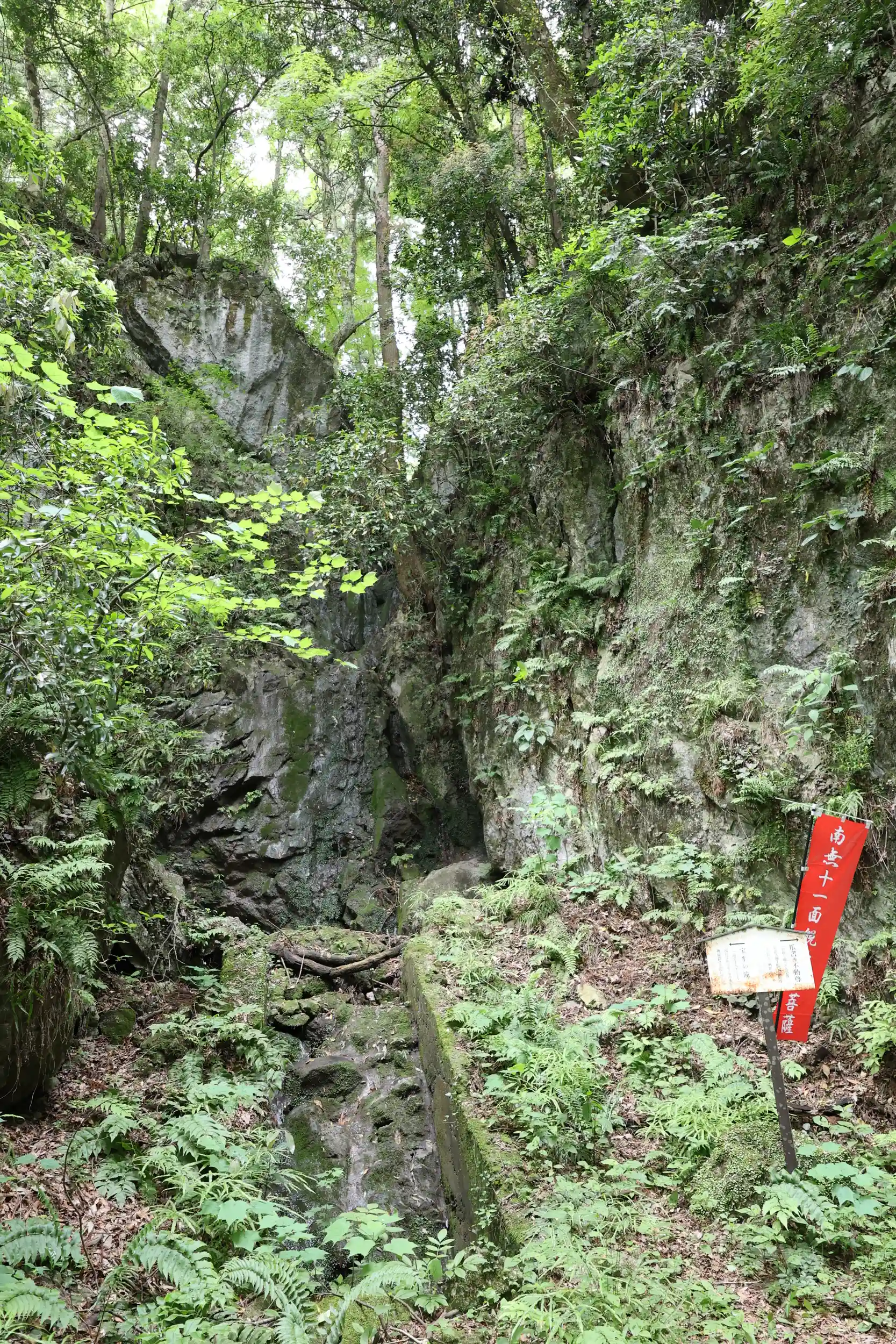 法光寺裏手の石灰山中腹付近に県の重要文化財に指定された岩殿観音窟石龕がありお参りしました😊