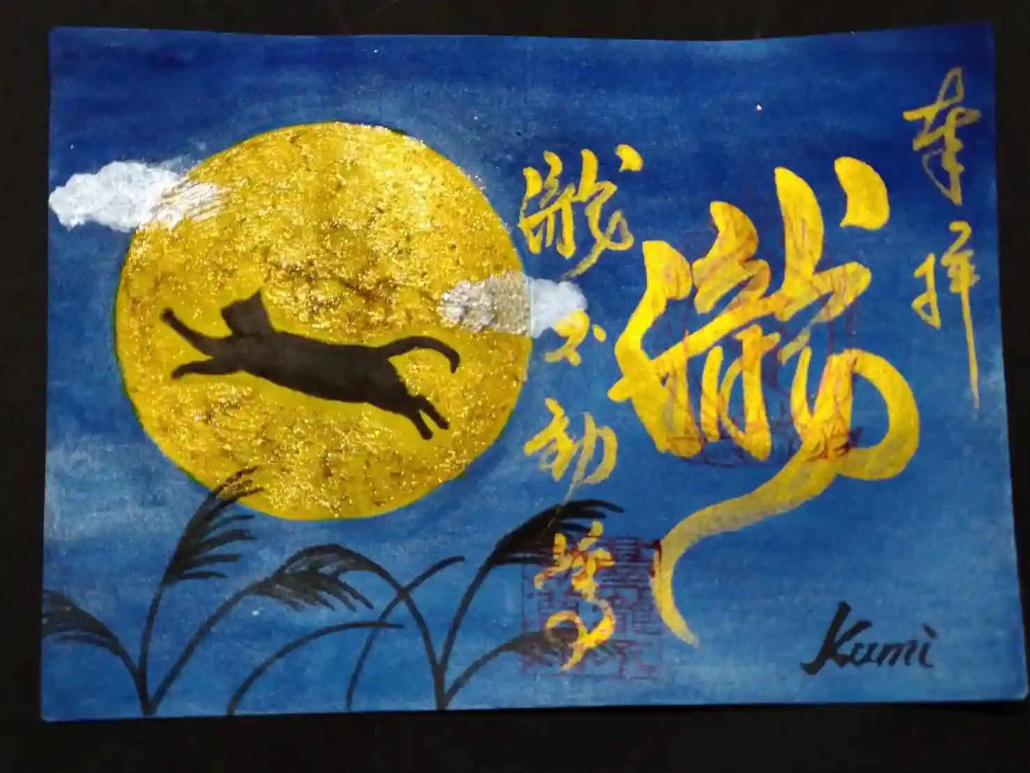 満月ひジャンプする猫の御朱印。