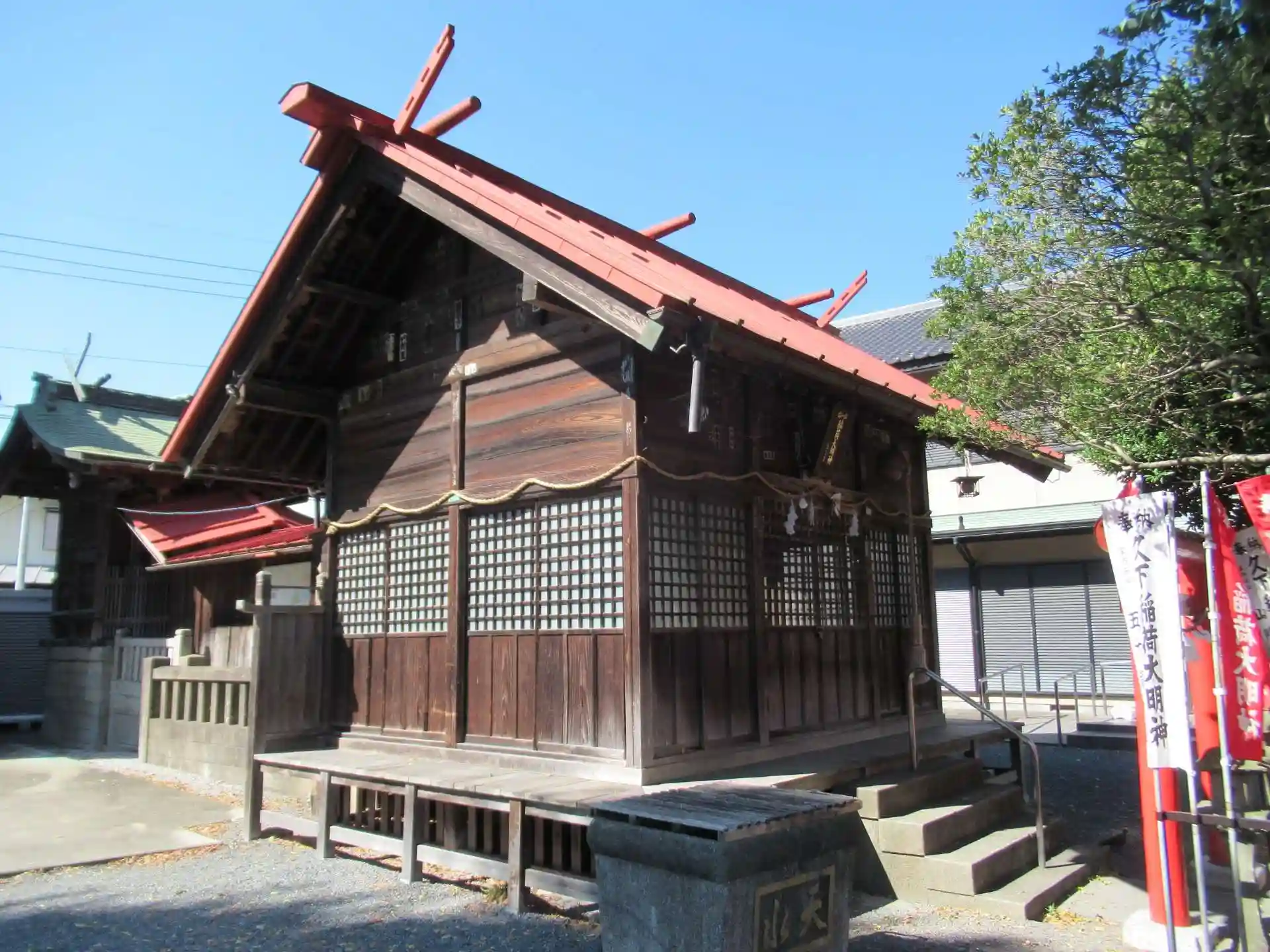 神職の方などは常住されていないようですが、大きな山車の格納庫や社務所が境内にあり、お祭りの時には賑わいそうです。